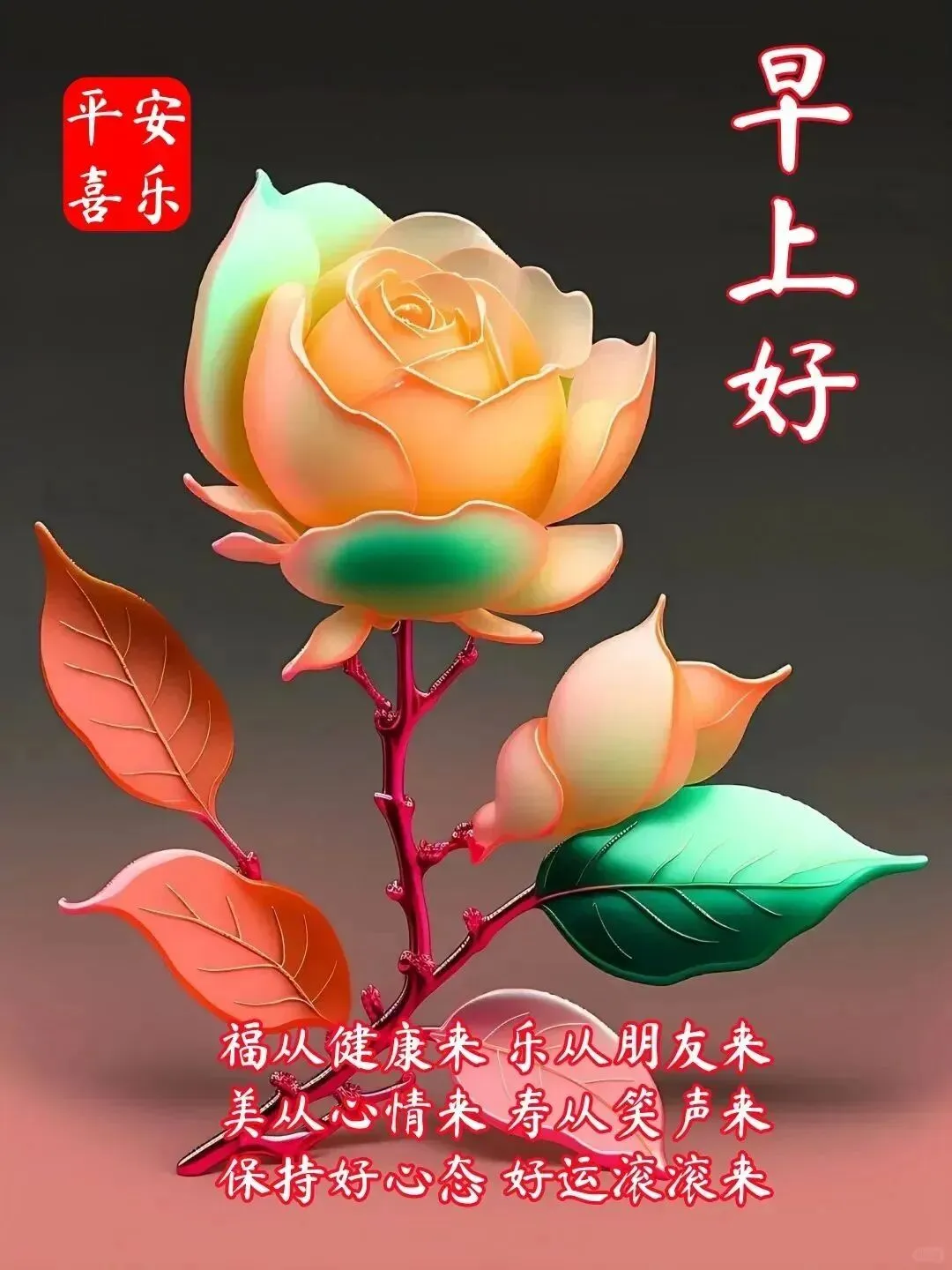6、把幸福与安康,凝聚在清晨的问候里。把快乐和吉祥,传递在每天的祝福。不论远近都挂念,每天记得问候送祝福,平安健康是心愿。多保重,快乐过好每一天。大家早上好!