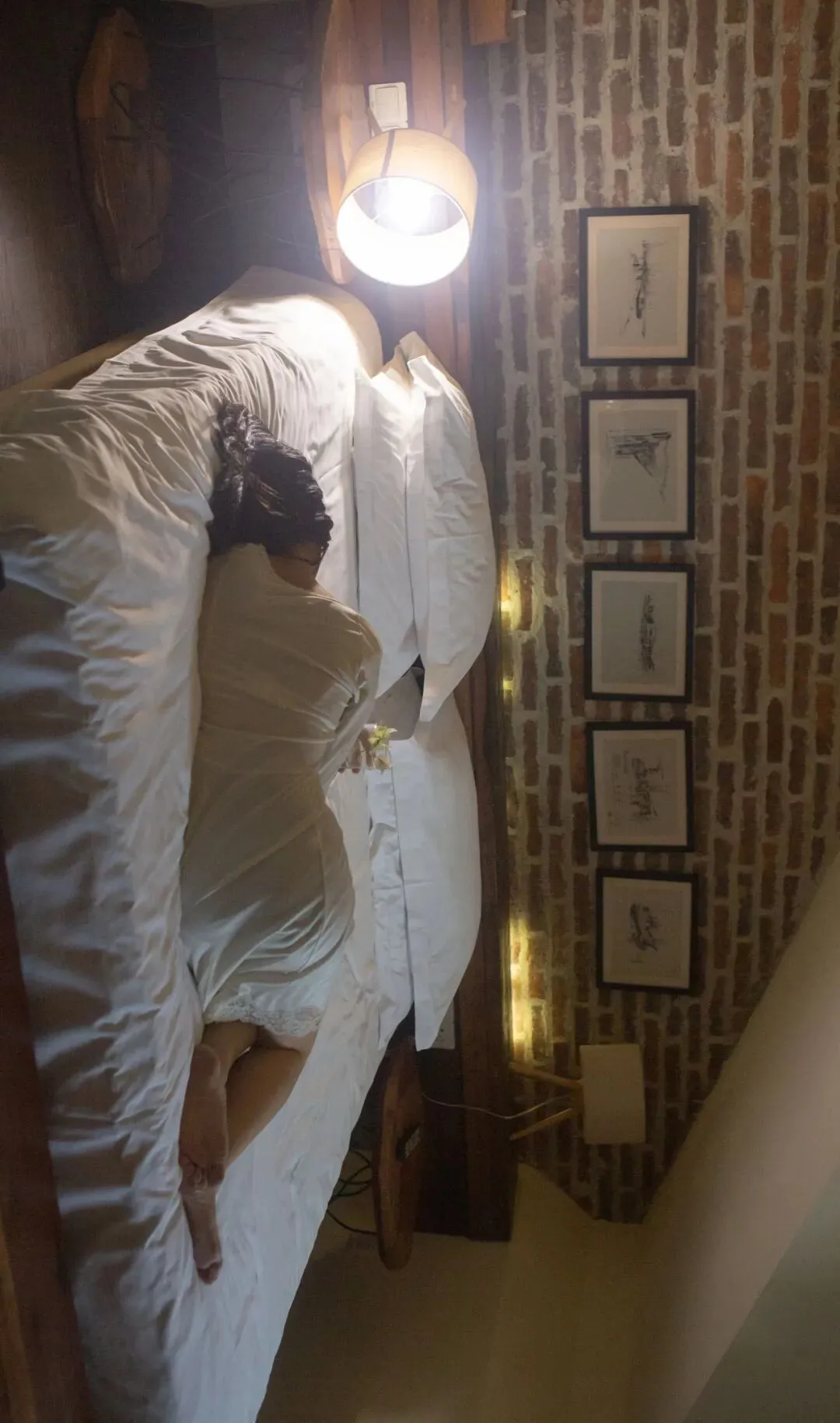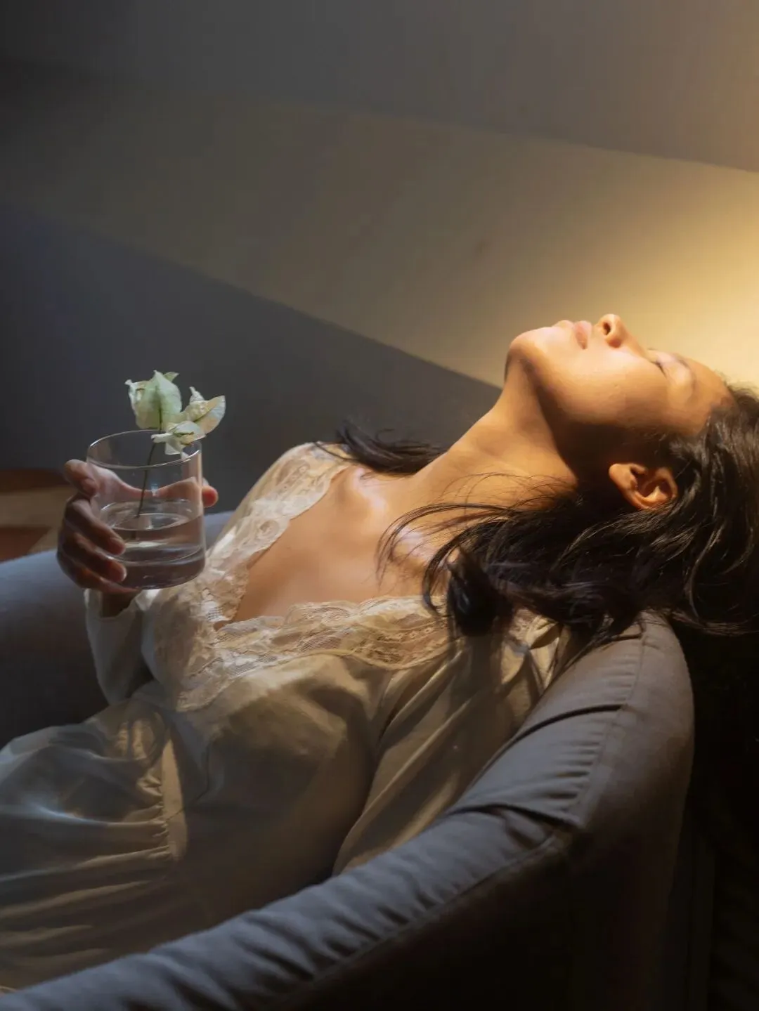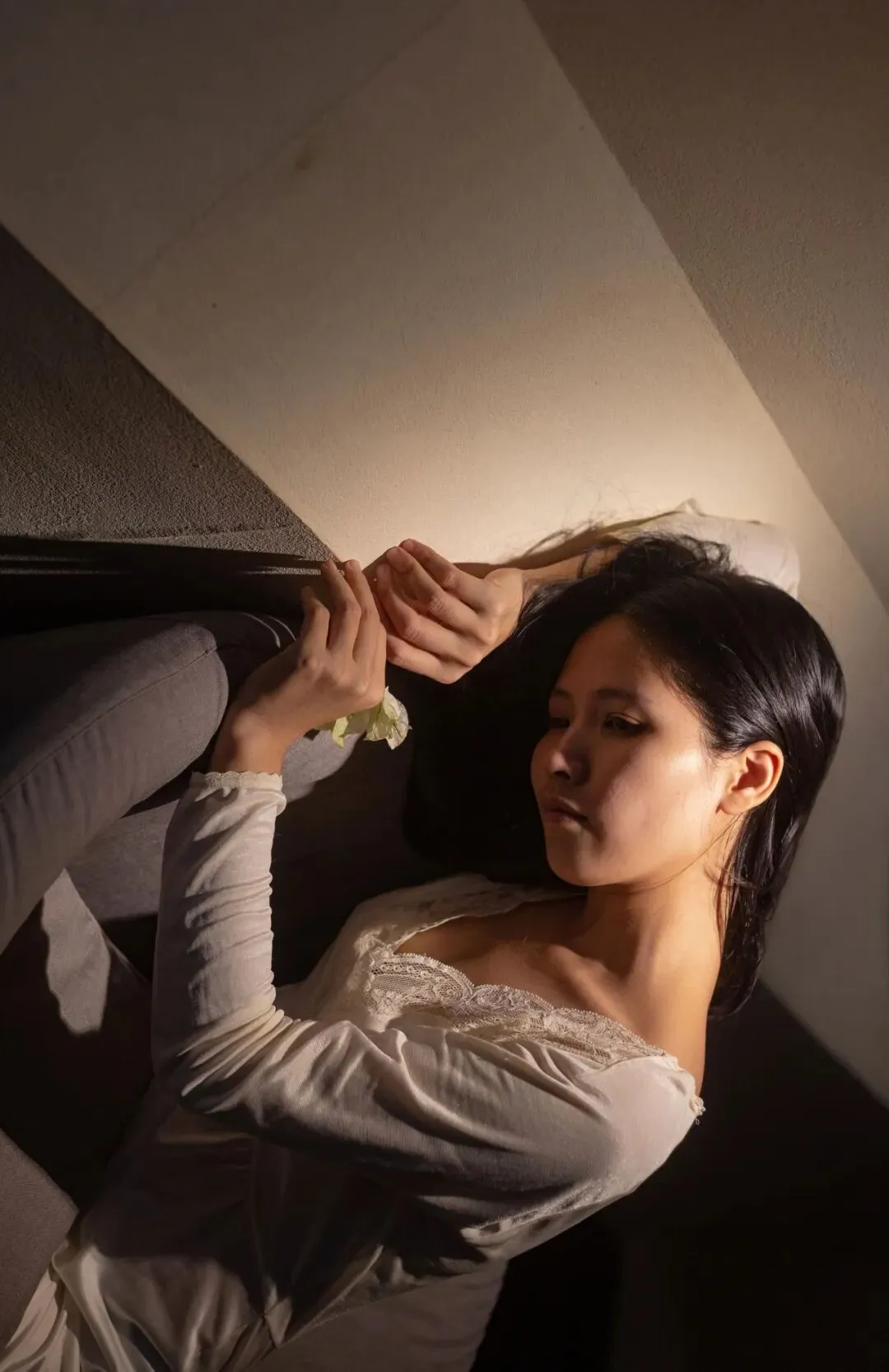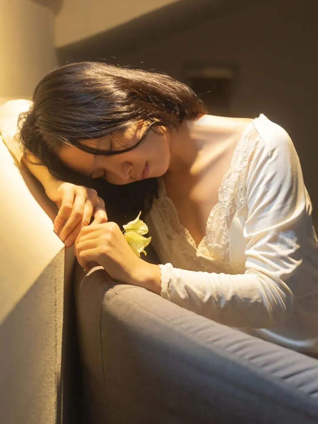 这组图走的是 “私密情绪” 路线,用昏暗室内作底色。这组摄影作品主打私密松弛的情绪表达,创作上以日常居家环境为载体,沙发、床榻的布置拉近了与观者的距离。光影运用很是巧妙,暖调柔光像一层薄纱笼罩画面,弱化了明暗对比,烘托出慵懒又私密的氛围。模特身着蕾丝白裙,肢体舒展松弛,或倚或卧,眼神半阖,将独处时的放空与惬意精准呈现。没有浓烈的情绪外放,只在淡淡的氛围里传递出温柔闲适的质感,整体观感舒适又治愈,很容易让人共情。
