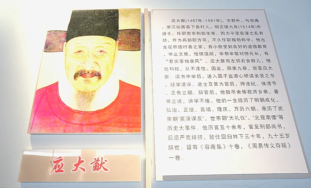 五十载宦海浮沉,应大猷历经朝堂风云、仕途起落,却始终以一身不屈风骨直面强权,以两袖赤诚清风扎根心底。他的故事跨越百年,早已凝为仙居大地上最珍贵的精神印记;这份刚正不阿的气节、清廉奉公的初心,历经岁月洗礼,依然熠熠生辉,滋养着一代代仙居人坚守本心、砥砺前行。