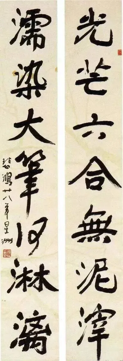 碑学之兴,乘帖学之坏。但当碑学逐渐成熟壮大繁荣之际,也出现或粗糙、或草率或程式化而无生气之倾向。徐悲鸿去两弊而取两优,在碑帖同重中践履着他的书法革命。