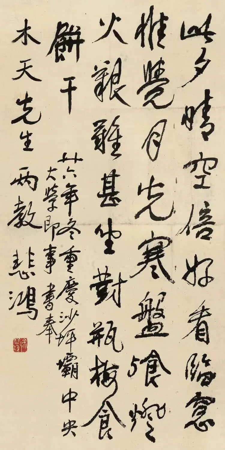 徐悲鸿《廿六年冬重庆沙坪坝中央大学即事》