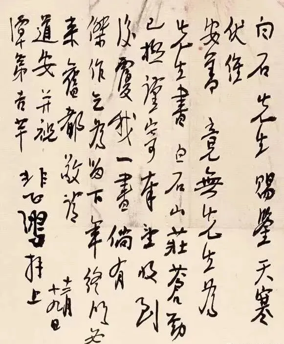 属心性之写作的典范例子还有书家的自题款。自题款如自画像,那是彰显人格精神、审美心灵的镜子。“悲鸿”二字的写法,是独具特色的个性化签名。结体宽博而紧凑,上宽下窄的结构,中锋用笔的浑厚。这太容易让人想起徐悲鸿的马了,那些结构内紧外松,无缰奔腾之马,是写生写实而来,却更是“天神”与“豪侠”,是“超绝尘寰的英灵般的向往”,是神驹,代表着徐悲鸿的理想情怀、人格气质、诗意追求。于是马也好,自题款也好,其实都是徐悲鸿“雄奇潇洒”的人格化写照。