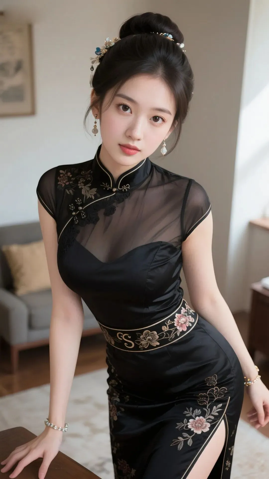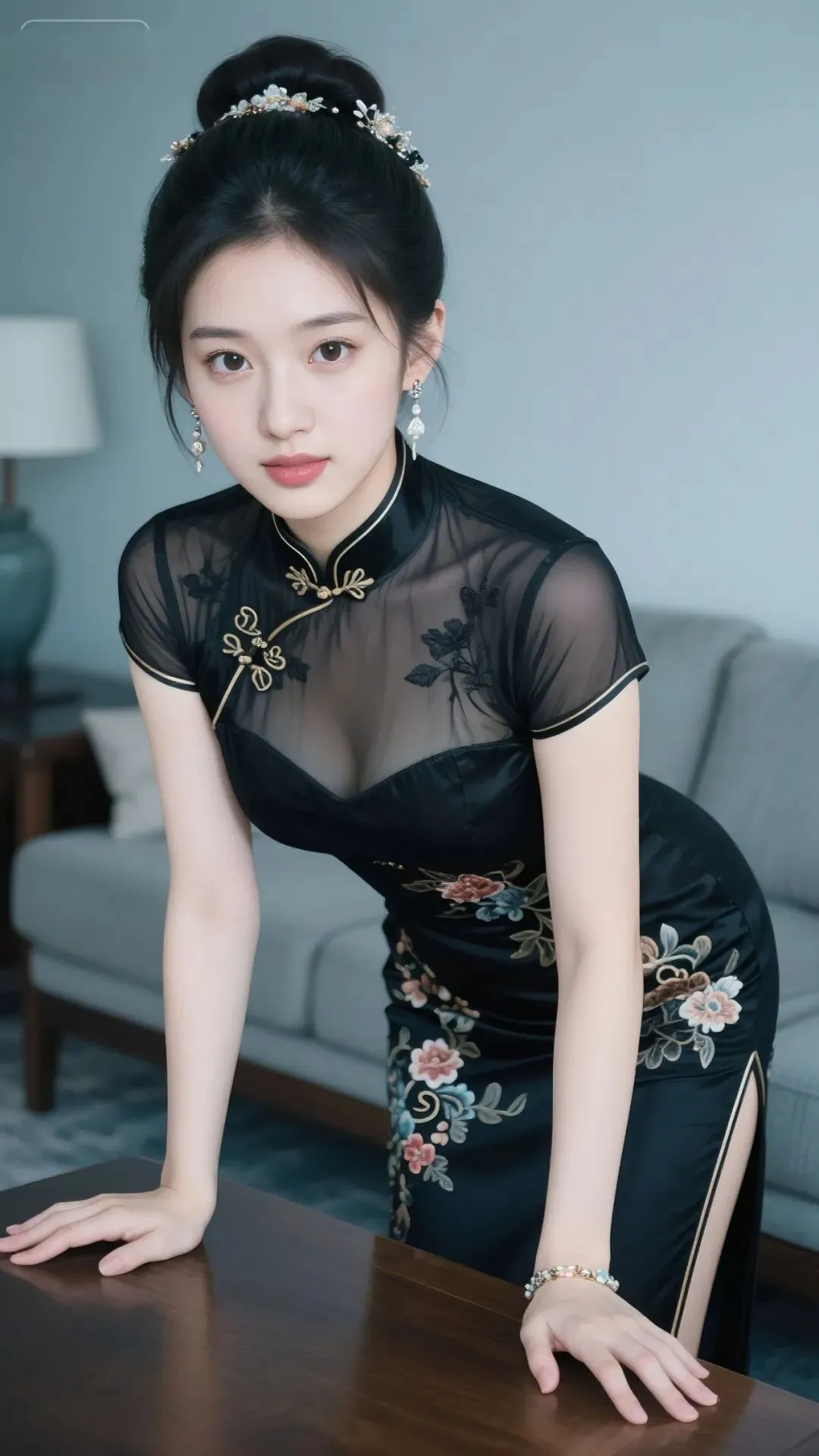 当前位置:首页>美女资讯>黑色旗袍装# 暗黑色蕾丝旗袍