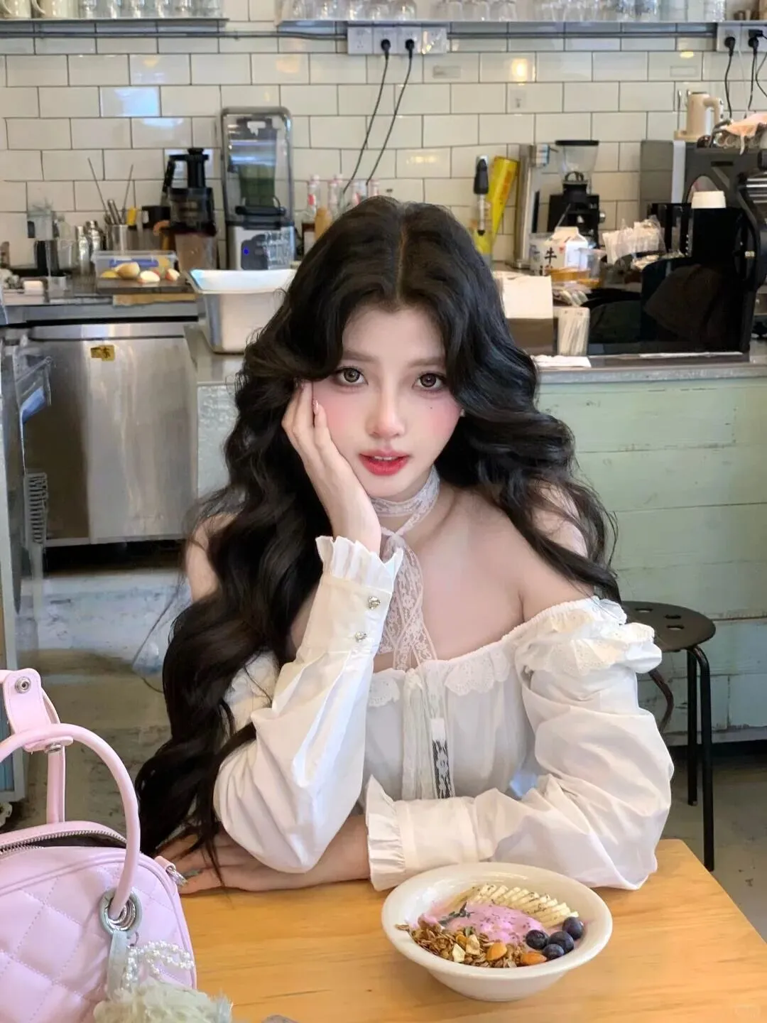 当前位置:首页>美女资讯>咖啡店吧台旁 白蕾丝露肩的轻甜松弛