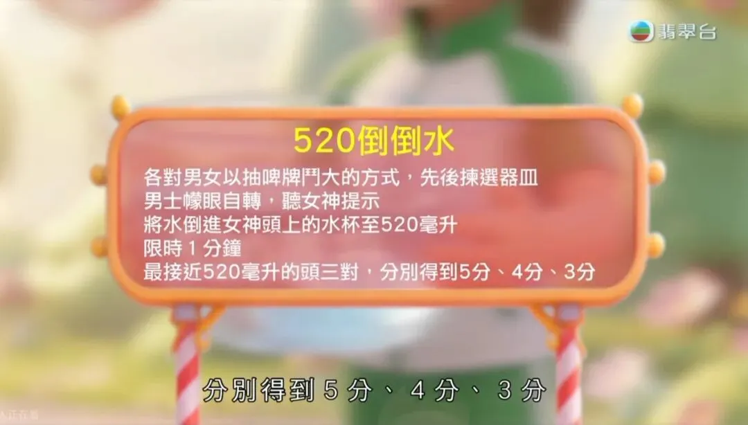 第二个游戏:520倒倒水。男神选择一个装水的容器,然后倒水到女神手中的器皿,越接近520ml表达的心意越充足,这个游戏还得男神先转圈圈,随后站稳倒水,最后也有一对可以满520ml,算是一个惊喜。