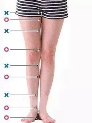 美腿就是,有5处并拢,4处空隙的腿,具体来说,就如以上图片所示,标有○的5处左右紧贴在一起,标有×符号的4处有分开一定距离的缝隙,双腿并在一起膝盖朝向正面的时候腿型笔直,就是很棒的腿型。