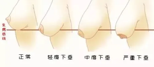 以乳房底线为准,乳头在线上4-5CM正常,乳头在线上为轻度下垂,如果超过底线2-3CM是中度下垂,4CM就是严重下垂了!