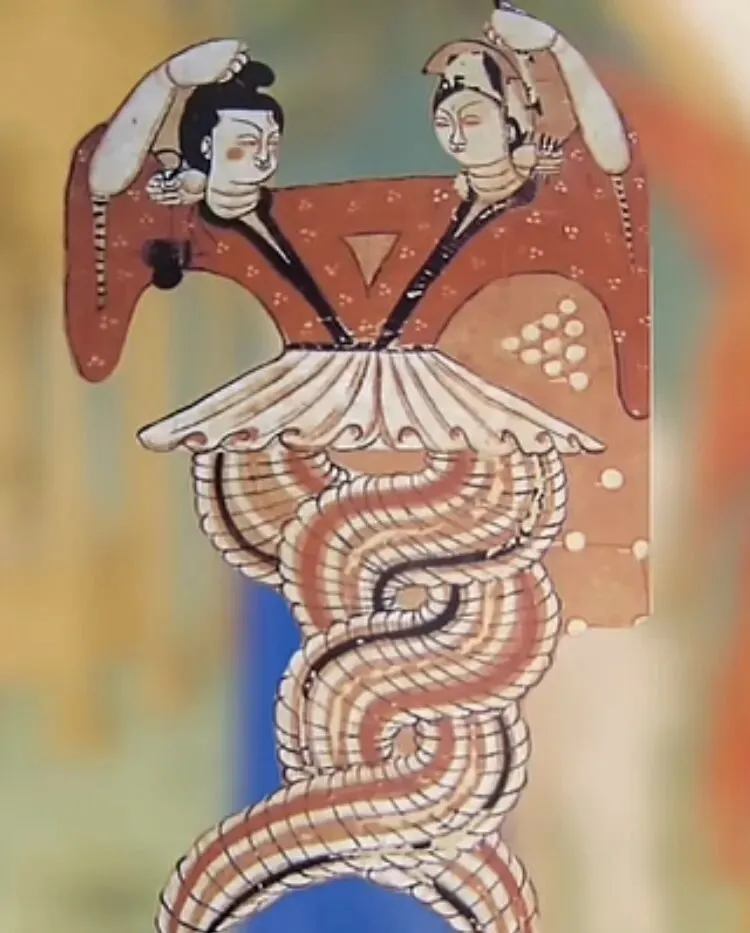 东方的风,到底更古老些。它越过帕米尔,捎来另一则故事:人首蛇身的女神,姓风,持黄土,造人,舞笙簧。女娲。这音节在唇齿间一滚,我几乎要战栗了——那与“Havah”之间模糊的应和,是语言在时间长河里偶然的漩涡,还是同一尊神祇,在相隔万里的两岸,被不同的口舌呼唤?抟土的造物主,与肋骨所出的“众生之母”;补天的救世主,与摘取禁果的“祸首”。伏羲女娲的蛇尾交缠,欧律诺墨与欧菲翁的炽烈相拥,伊甸园中那桩暧昧的“堕落”……或许都是同一枚古老的印鉴,盖在不同文明初诞的绢帛上,印泥是血与土,印文是生命的本能。绢帛或已脆化,印文或已漫漶,但那凹凸的痕迹,固执地指向同一个源头:一位蛇形的、创造的、赋予一切活物气息的母神。