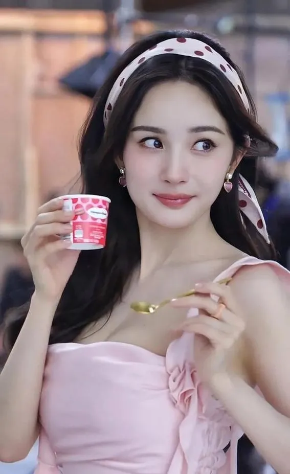 优雅女神杨幂:吃固体杨枝甘露,沉静如水,随行自在.