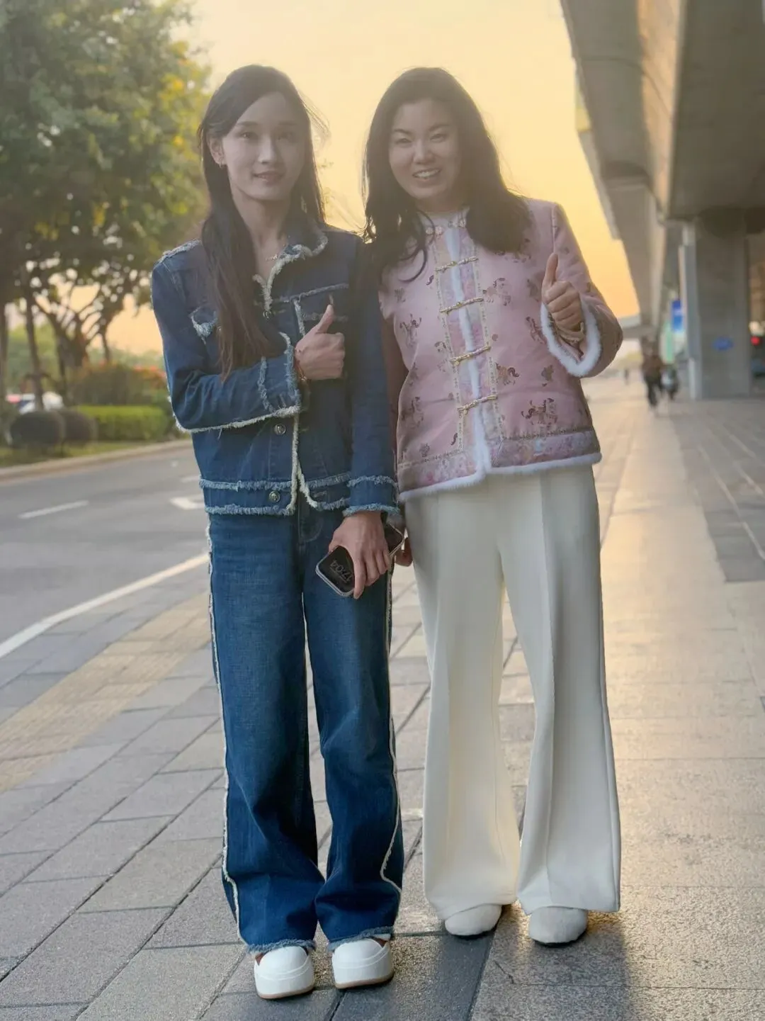 她一旁的小助理微笑着把手指放在嘴边做了一个嘘🤫的动作,示意我别太激动,“低调!低调!”,当我弱弱地问美珍可否跟她合个影时她二话没说走到我身边,并比出了剪刀手,那一刻我幸福感瞬间爆棚,立马托我前一刻在飞机上刚认识的跑友沙坪坝实验中学数学老师张大春为我定格下这珍贵的一瞬间。
