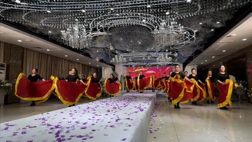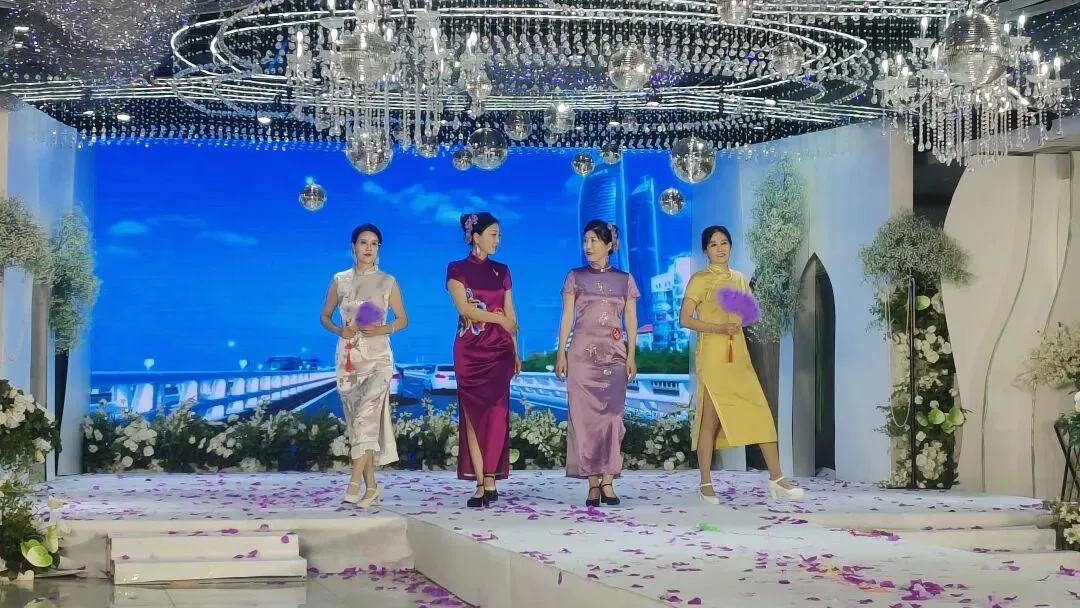 下午两点,华服初绽,惊艳开场,靓丽的会长女士带领大家跳完集体舞,模特们身着各式各样的旗袍、时装,迈着轻盈的步伐,款款而入。她们的脸上洋溢着自信而灿烂的笑容,眼神中透露出对模特文化的热爱与执着。我仿佛看到了旧上海的繁华与喧嚣,看到了东方女性的温婉与柔情。