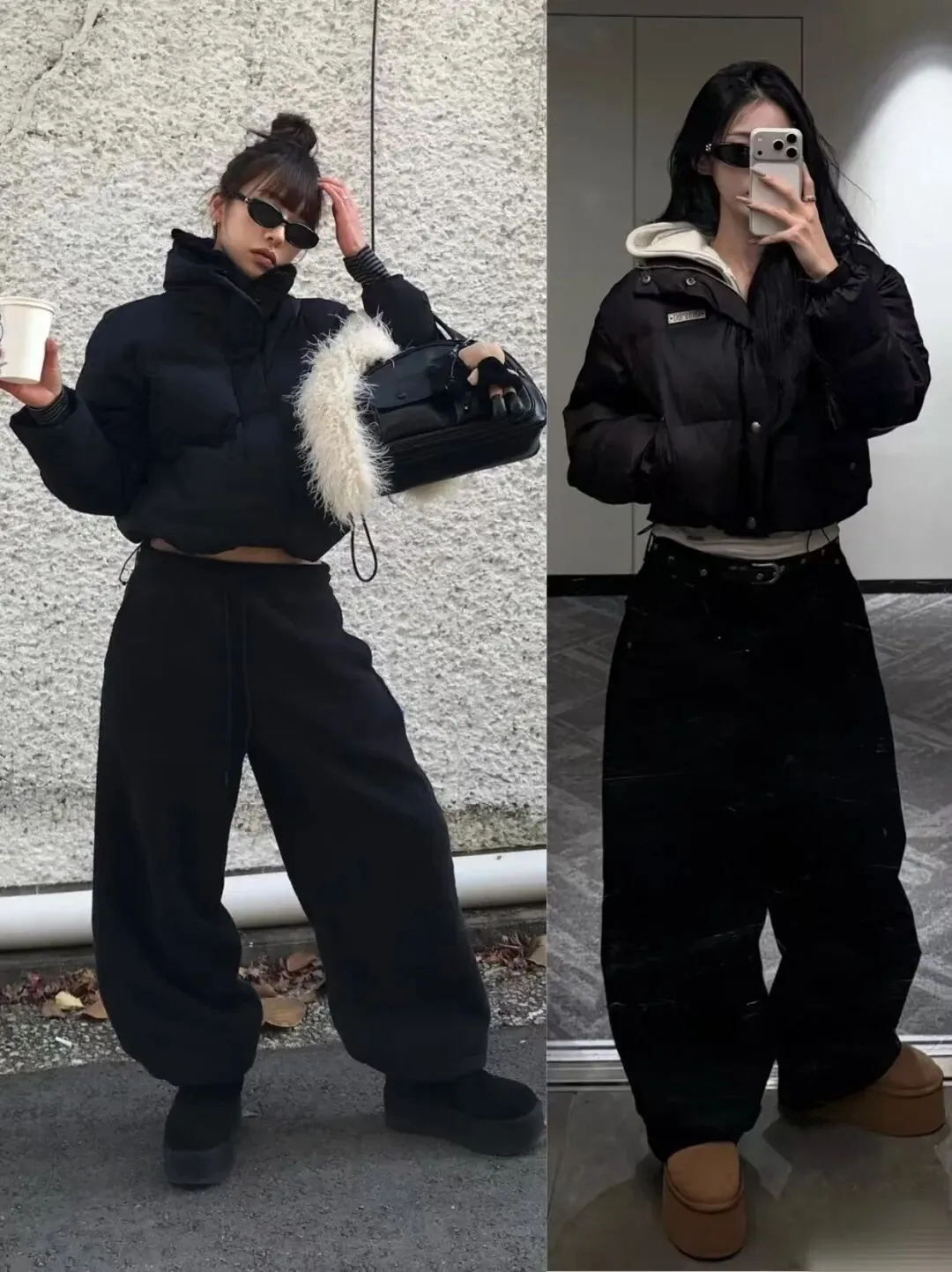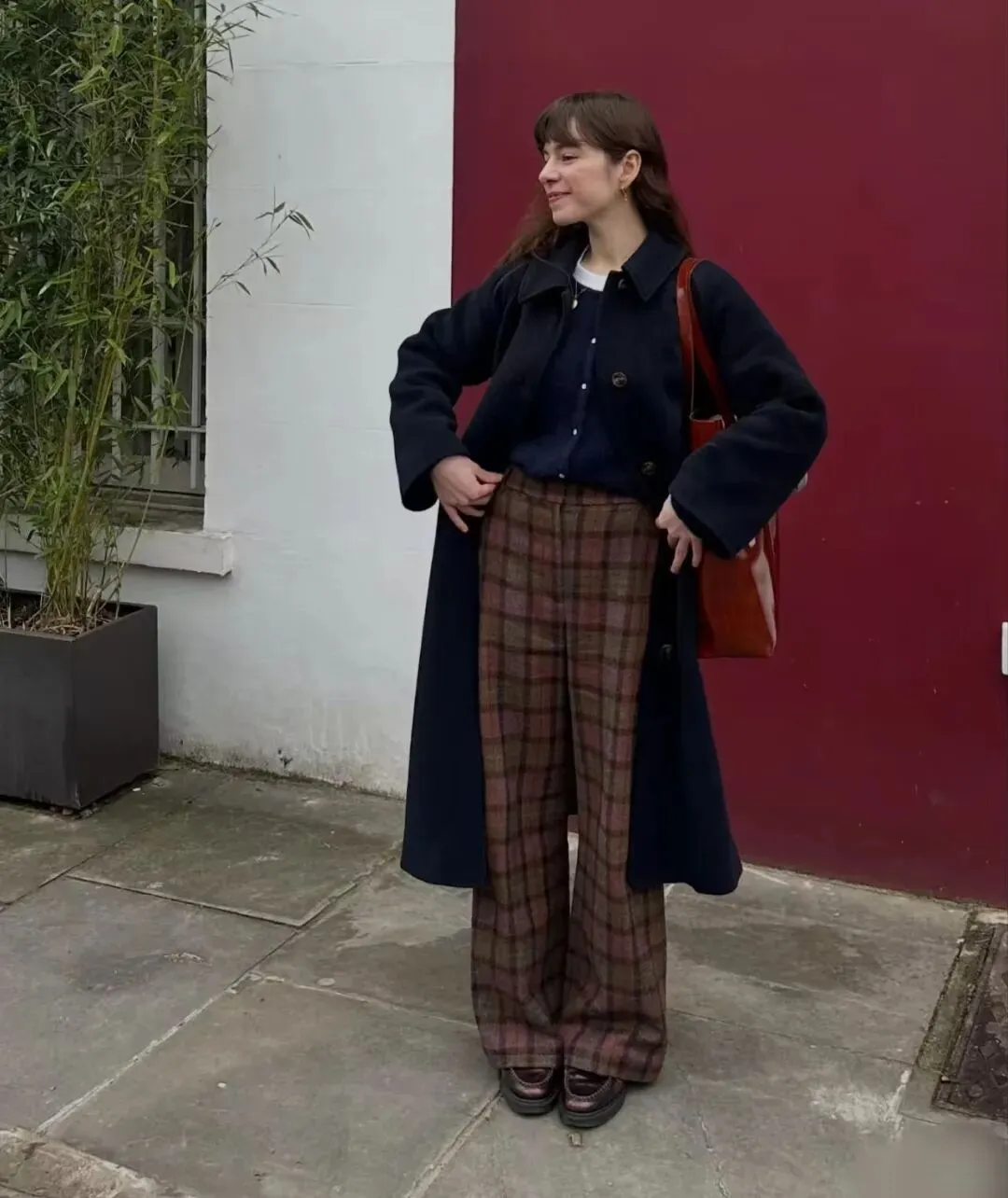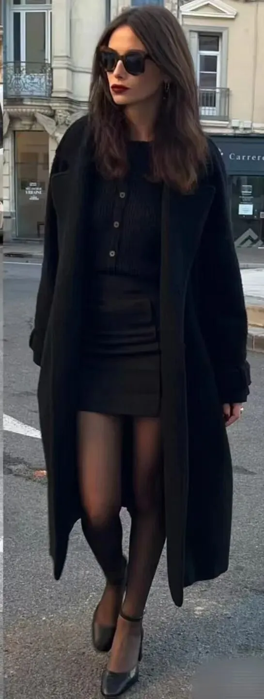 内搭颜色最好和下装统一,或者把上衣扎进下装里,无论是全塞、半塞还是只塞前面,务必露出腰线,外套敞开穿,形成连贯的纵向线条。