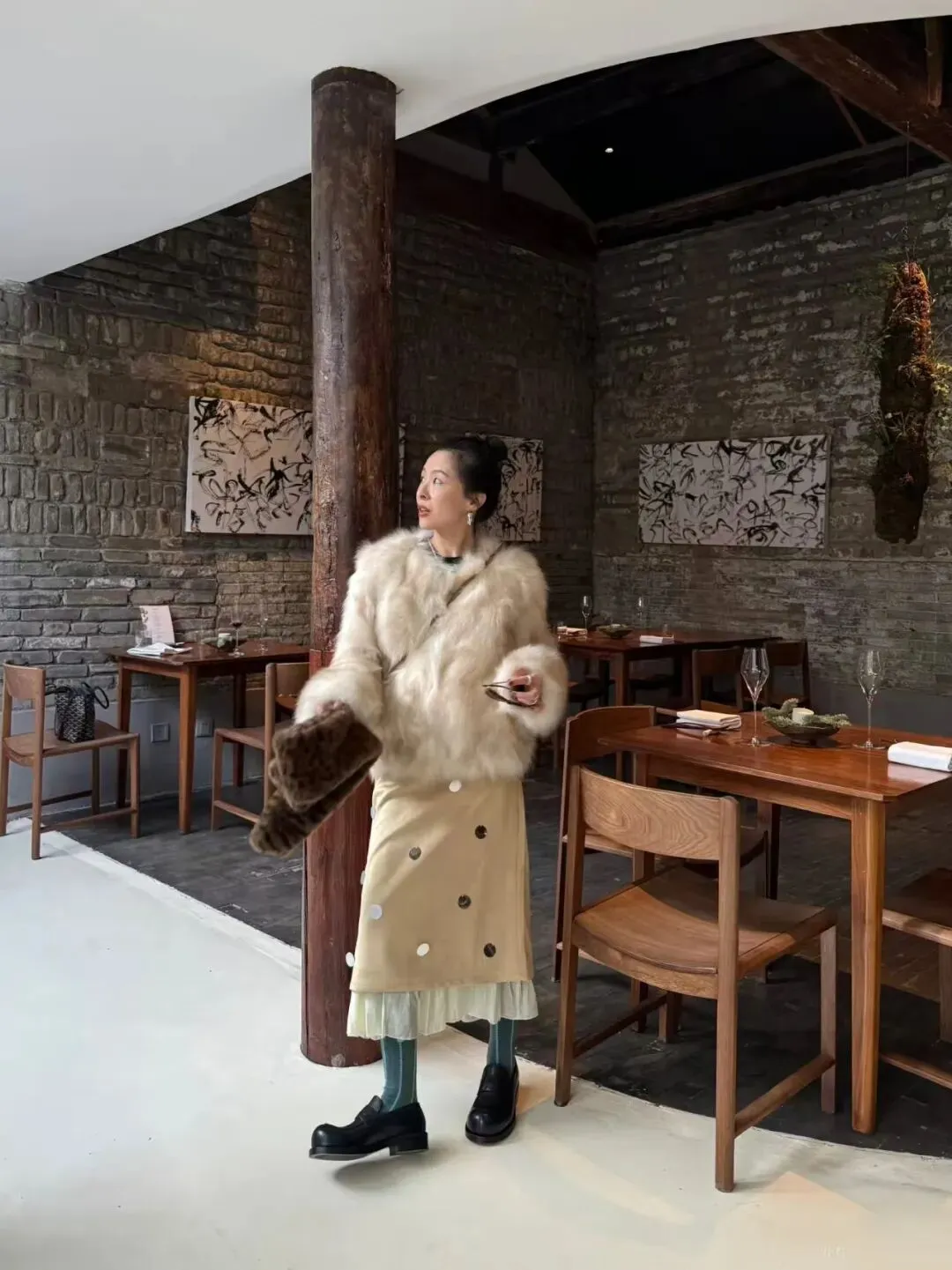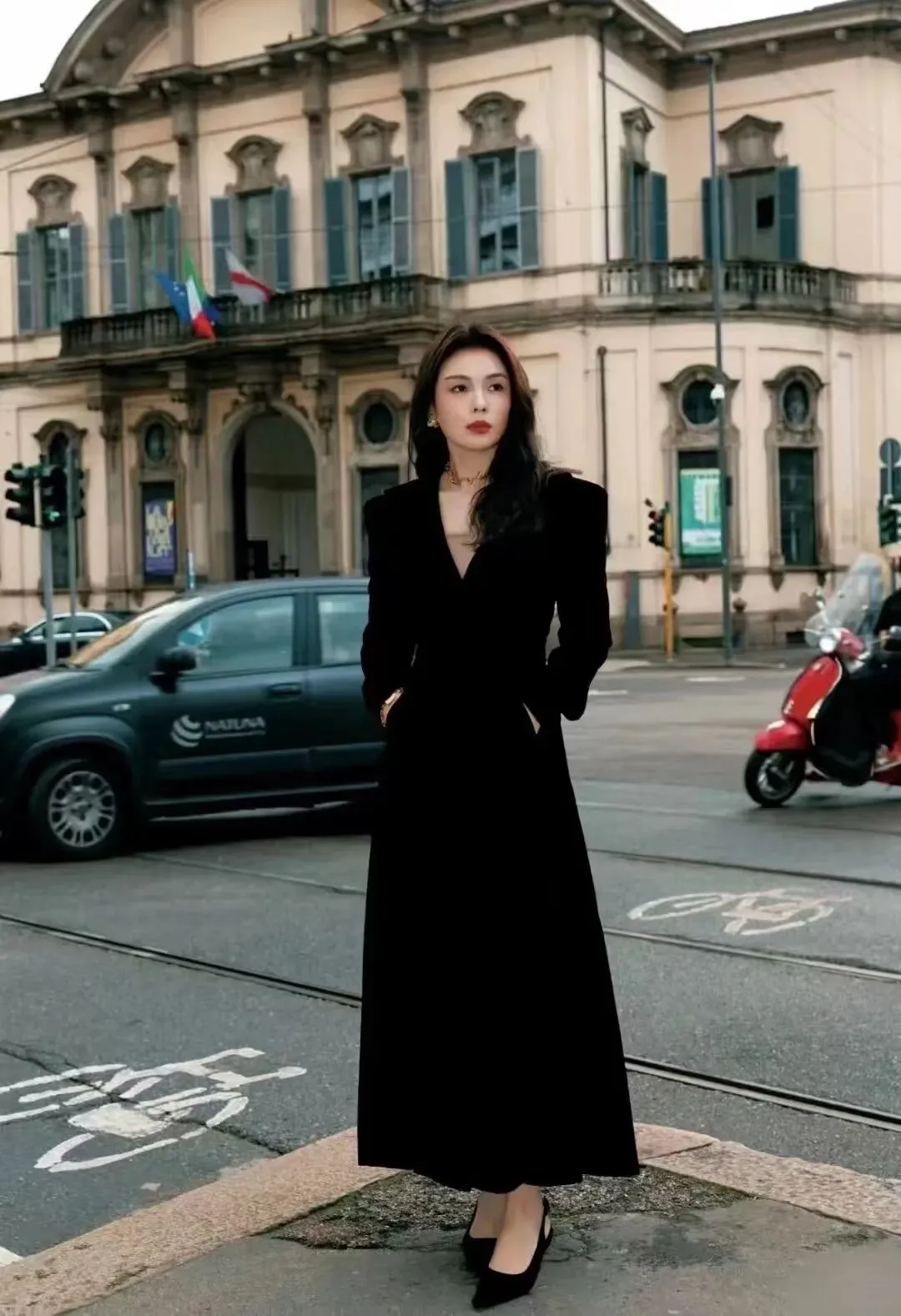 内搭选择有V字元素的衣服和首饰,或者叠穿V领马甲,V领能延伸颈部线条,视觉上“长高”。