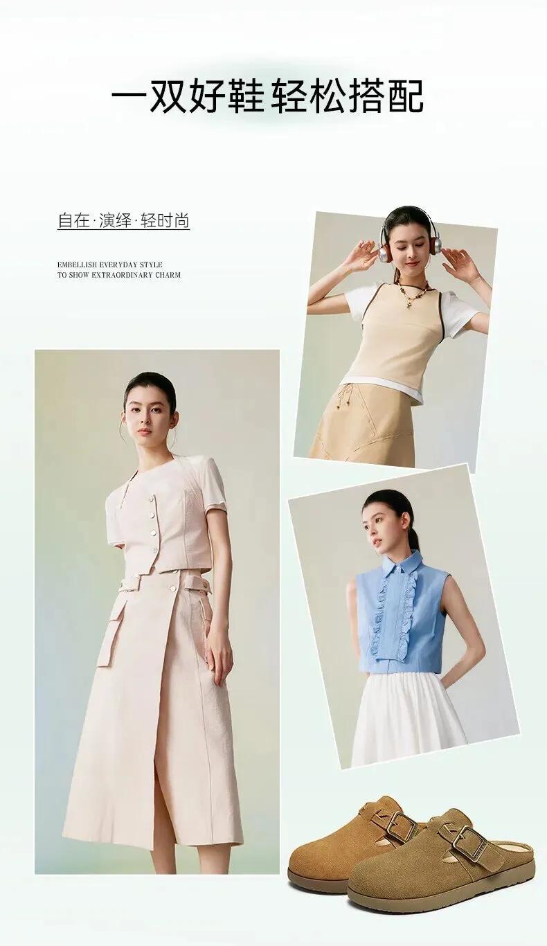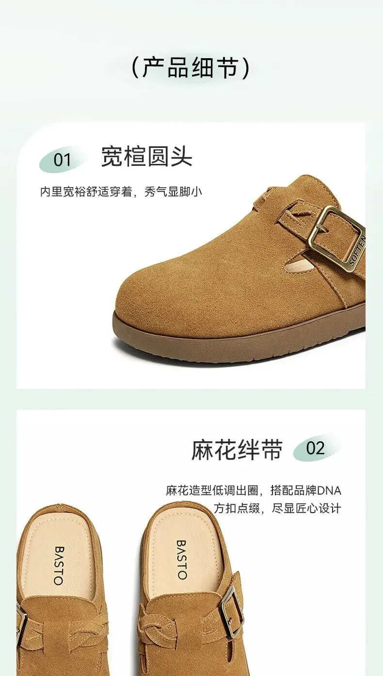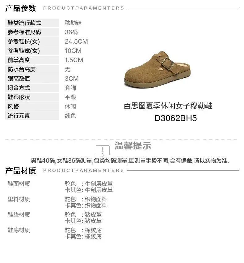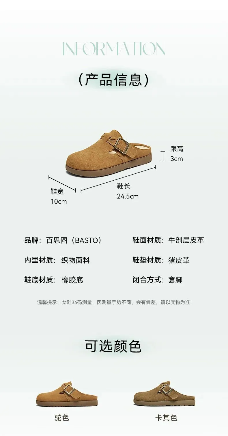 当前位置:首页>美女资讯>百思图夏季【半拖式】复古休闲穆勒鞋 平跟女拖鞋博肯鞋 卡其色