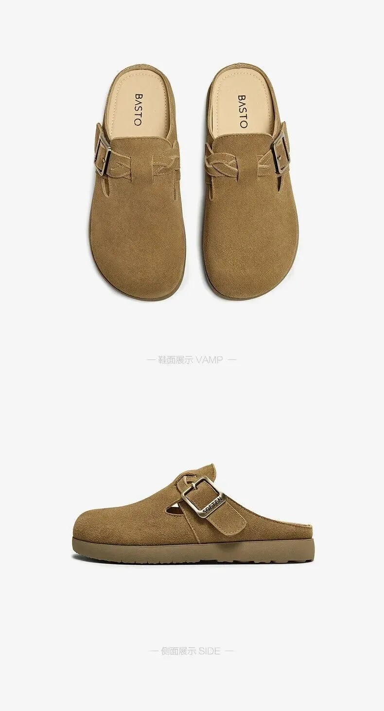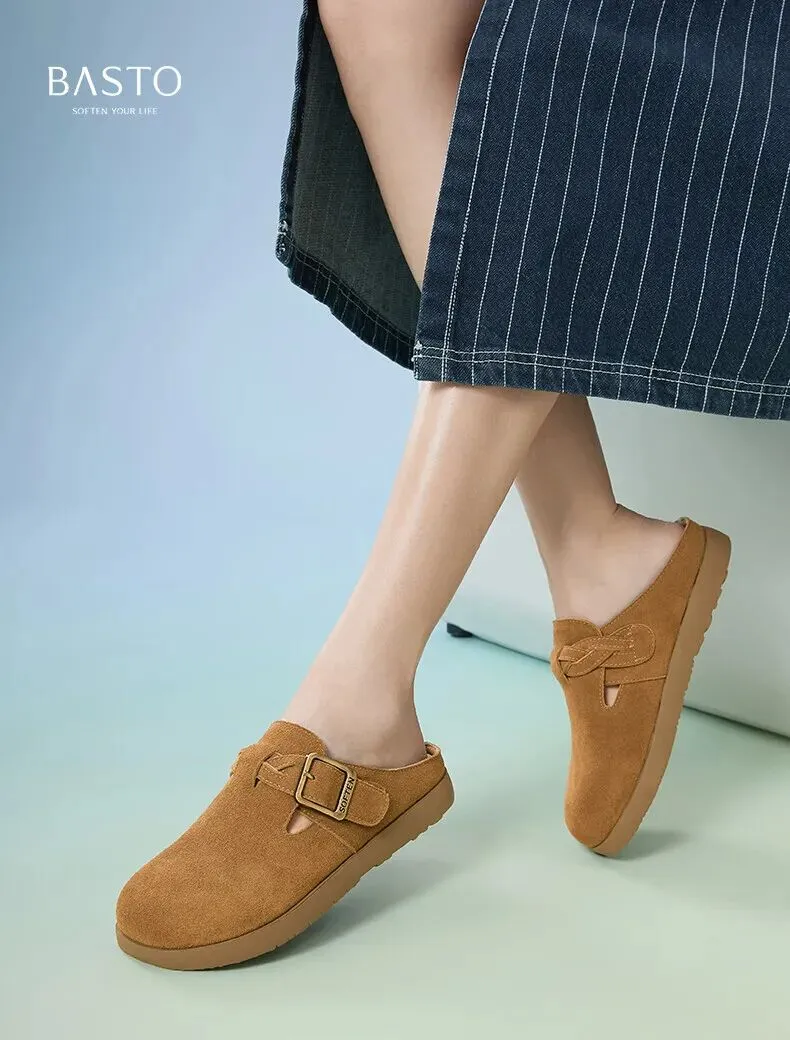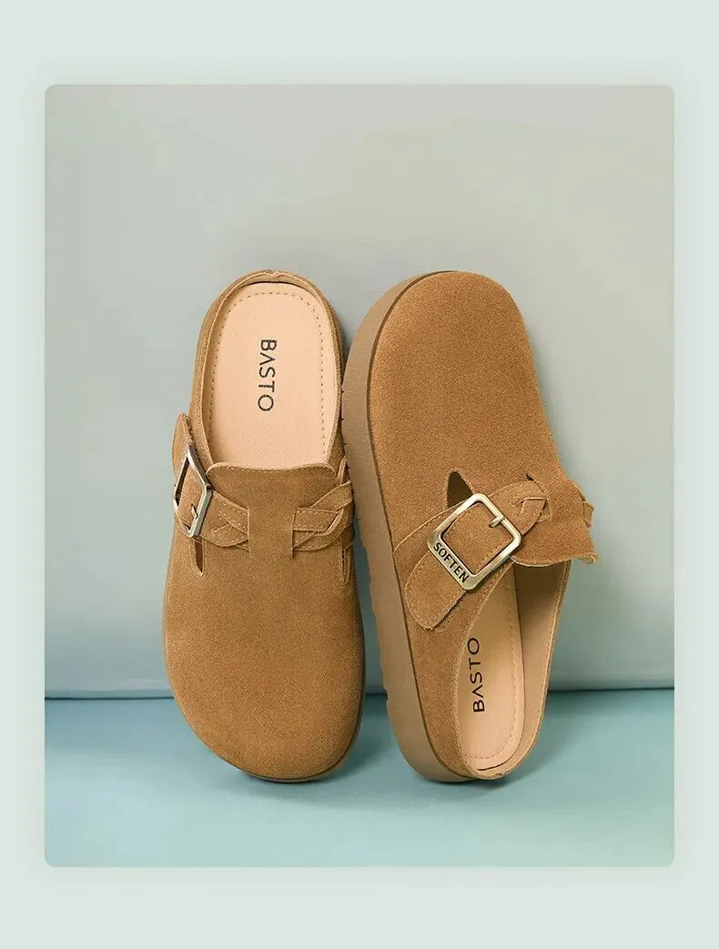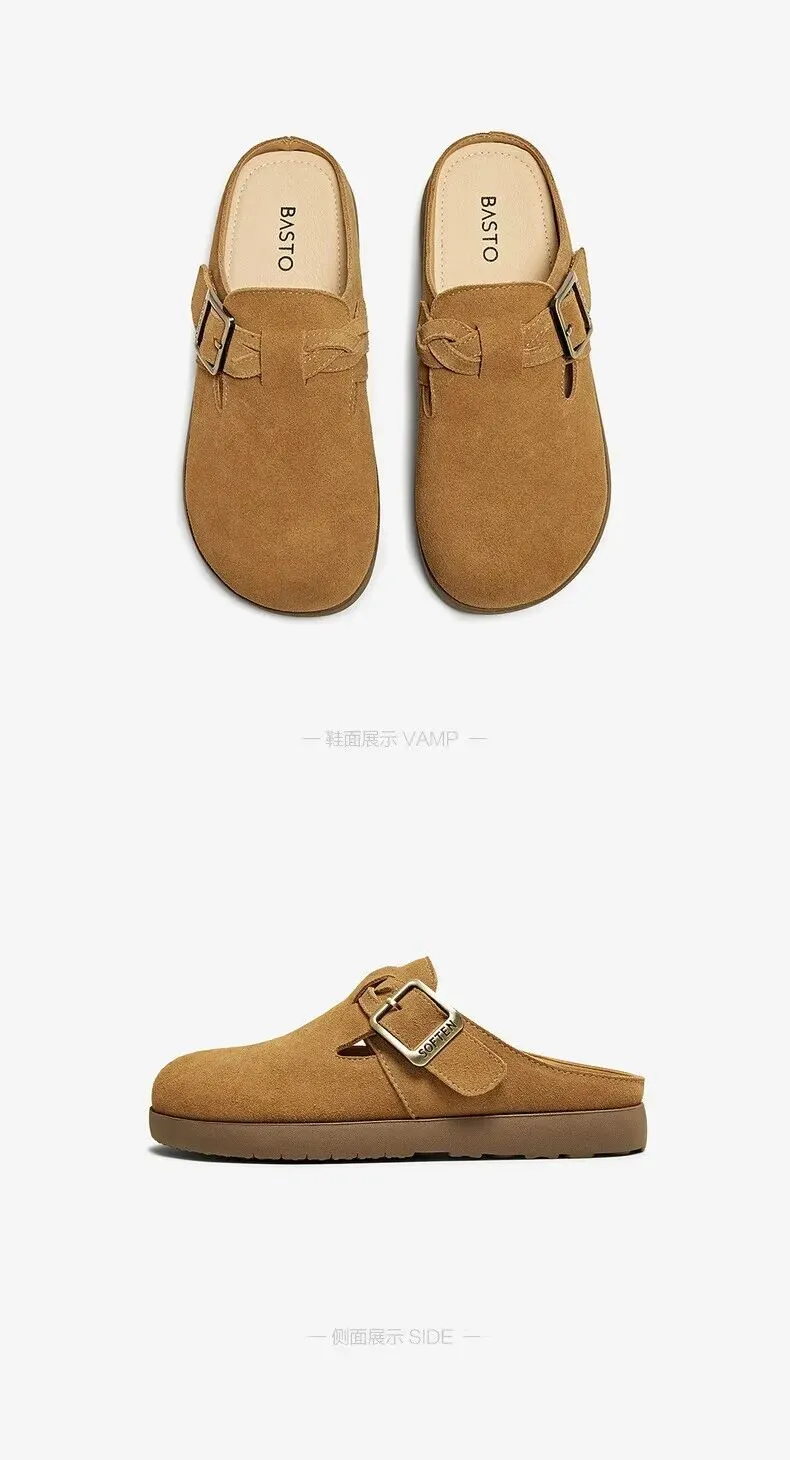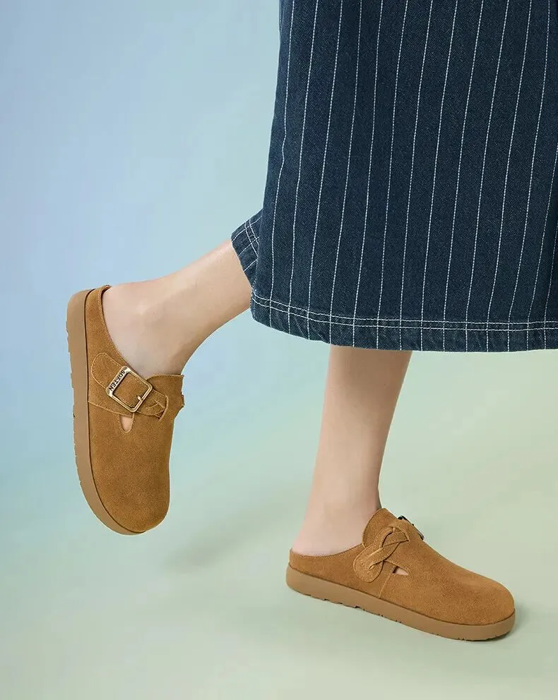 当前位置:首页>美女资讯>百思图夏季【半拖式】复古休闲穆勒鞋 平跟女拖鞋博肯鞋 卡其色