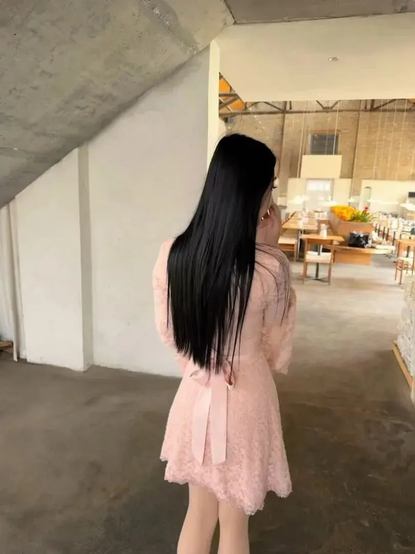 .来看.看这条让无.数女生下.单的粉色.蕾丝.连衣裙.。它不是那.种亮到晃眼.的粉色,.而是像.在粉.色里掺了一.点点灰.色,变成特.别高级的“.烟粉色”.。这种.颜色对黄皮.肤特别友.好,不会.显黑,反而.衬得皮.肤很干.净。