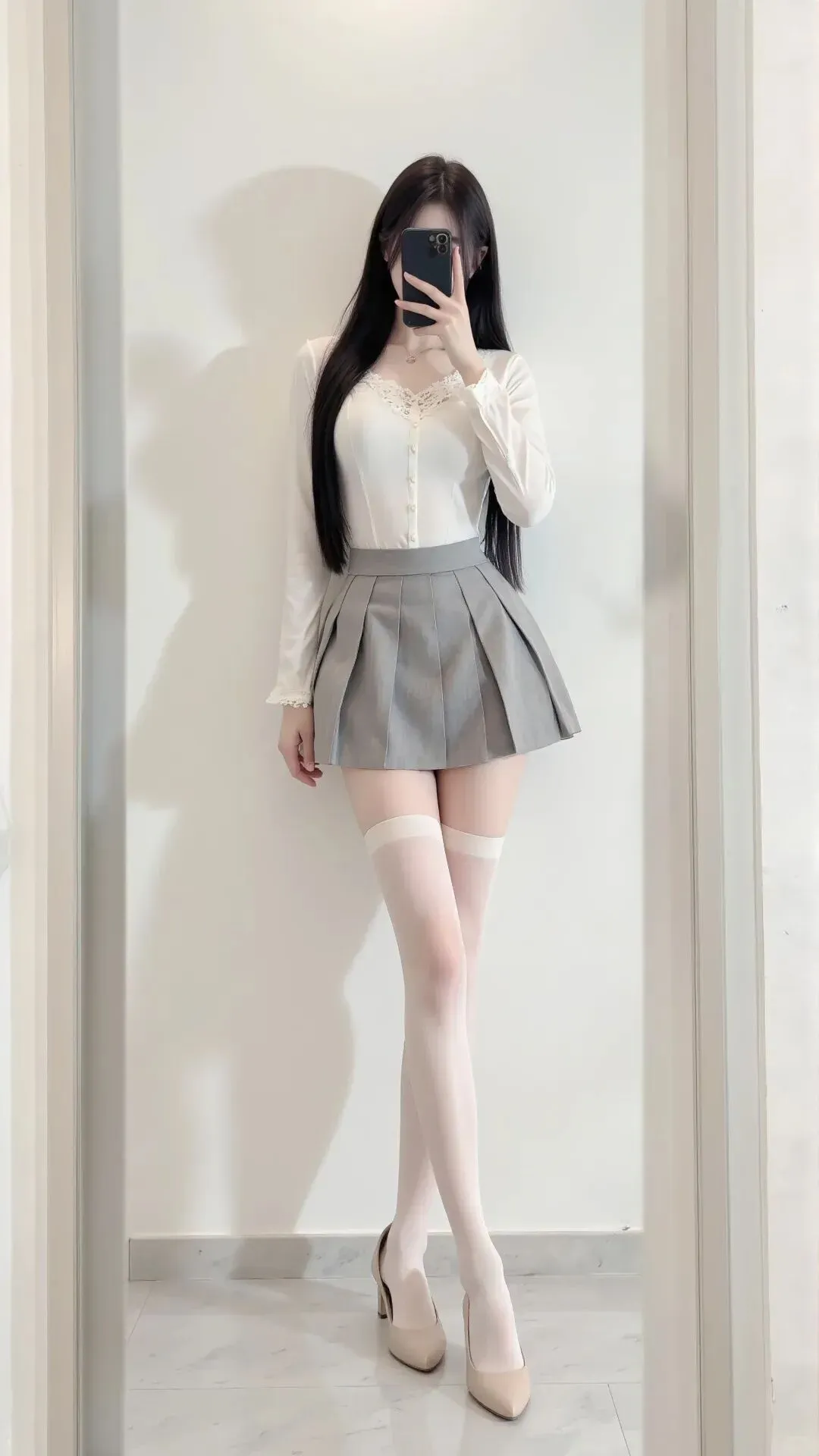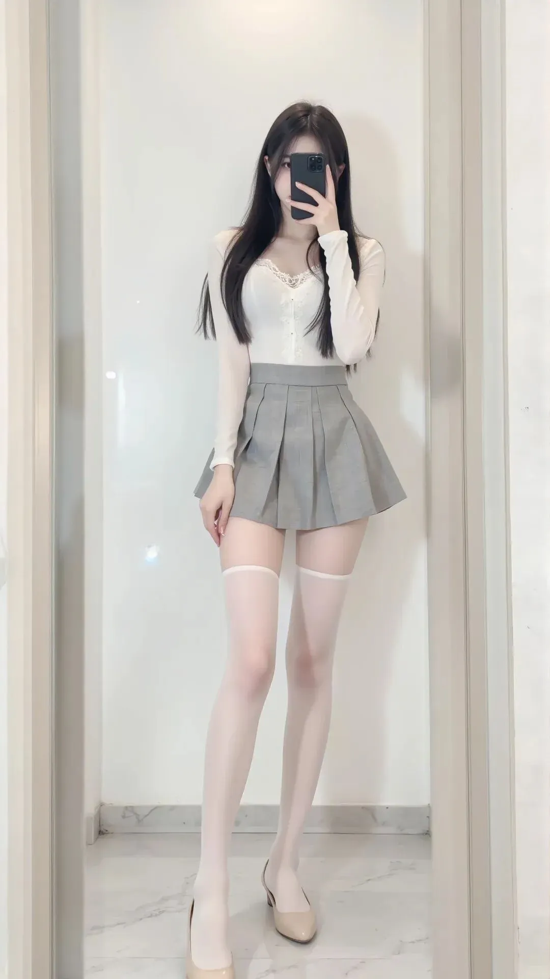 当前位置:首页>美女资讯>白色蕾丝针织+灰色百褶A字裙+白色长袜,温柔又有气场,越看越好看!