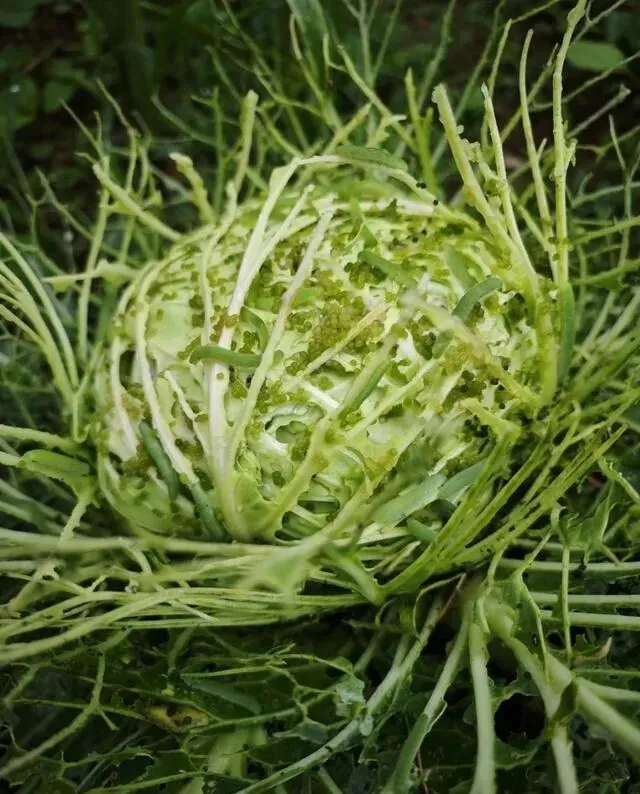 安徽小伙这颗蕾丝包菜 , 确实没打药 , 符合"有机"的定义。