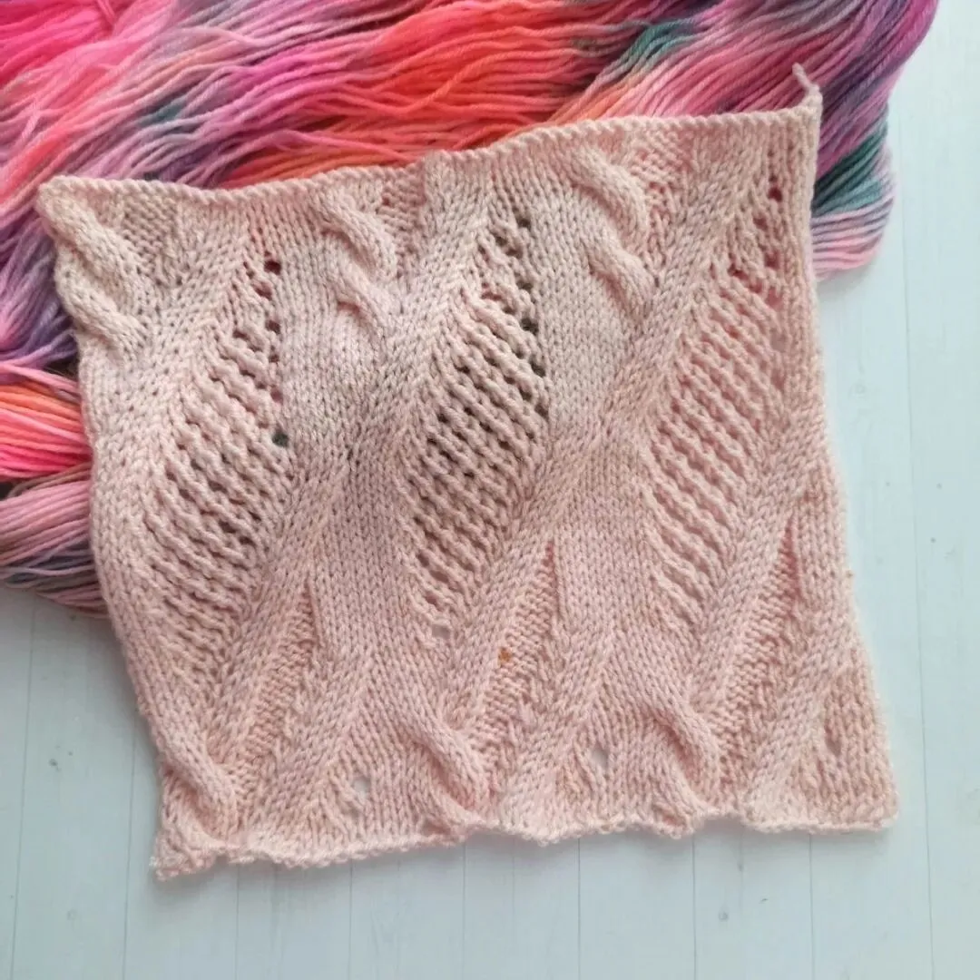 如需环形编织此花样:重复编织19针的花样重复单元,在偶数行,所有针目按实际纹理编织。