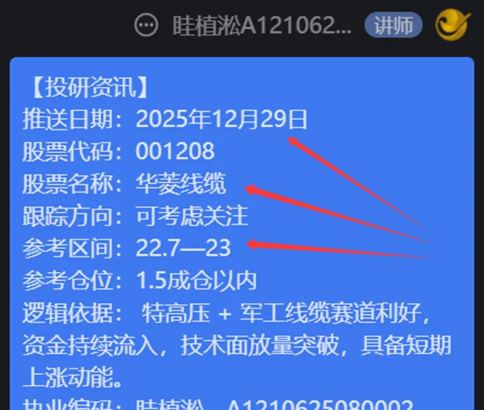 商业航天咱们班内1229日关注了华菱线缆,而这个票的逻辑,班内是反复给大家讲过多次的,17日(周三)收盘后更是文章里再次展开讲解华菱线缆的逻辑,它周四低开高走,收盘涨停,周五涨停价开盘,如果有人周四早上买入,周五开盘已经盈利20%