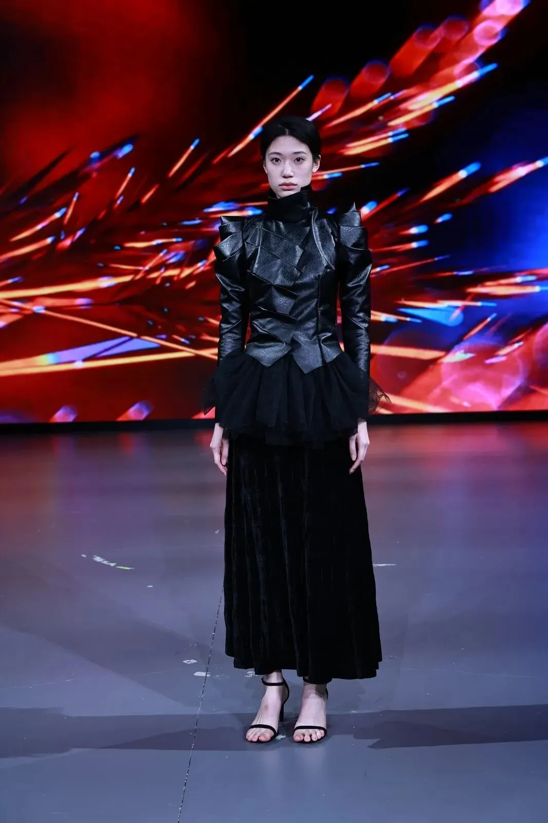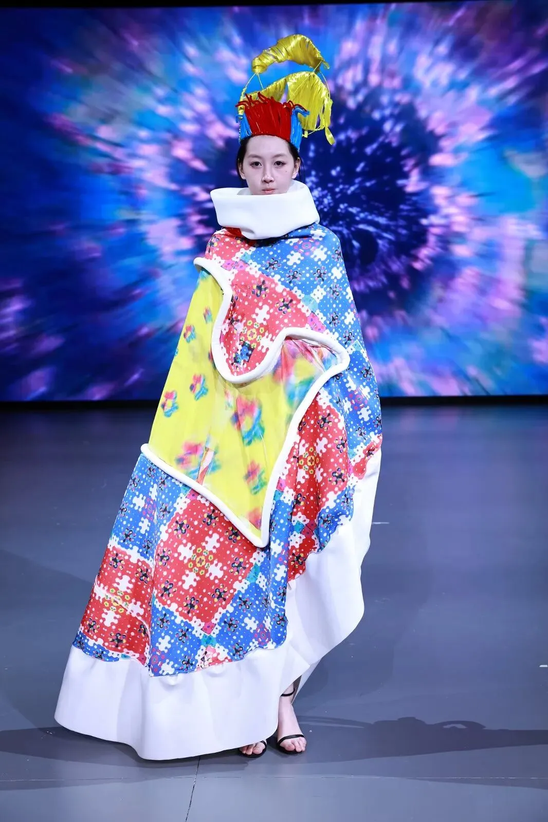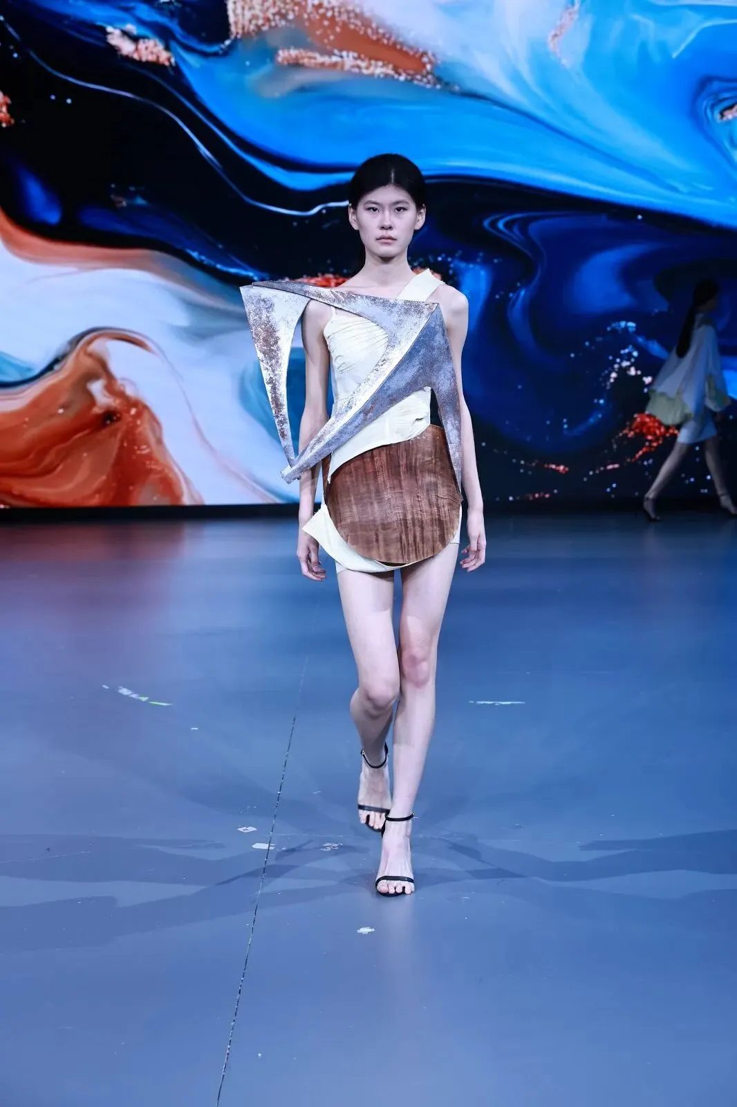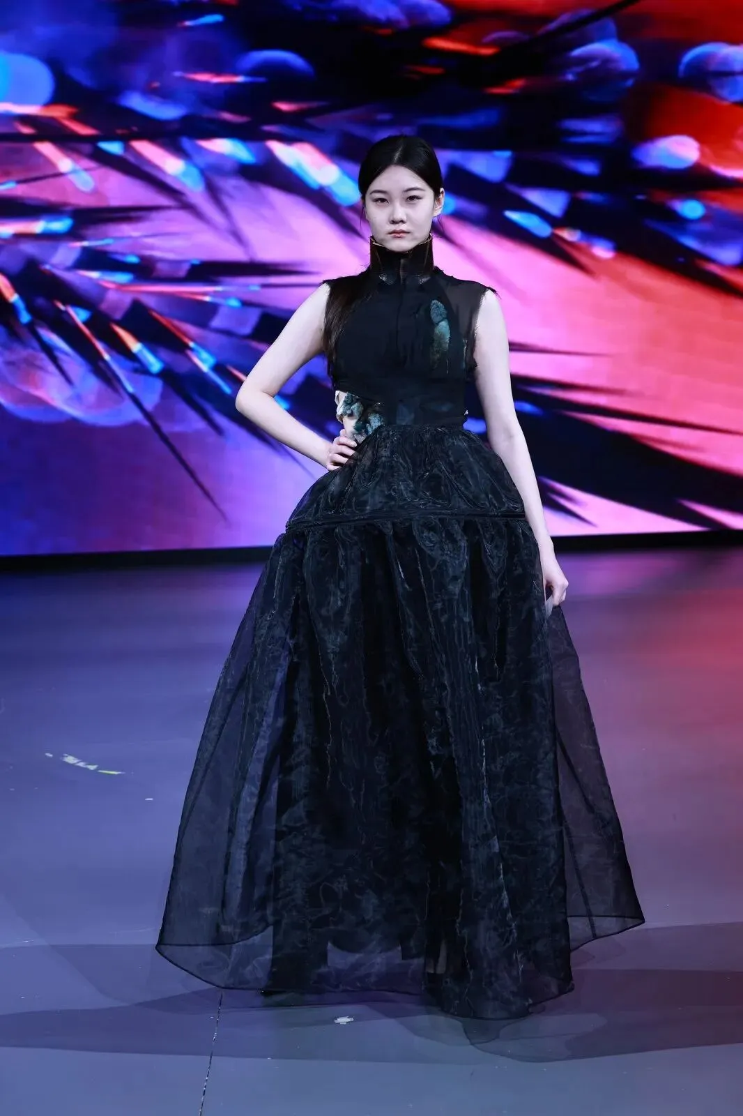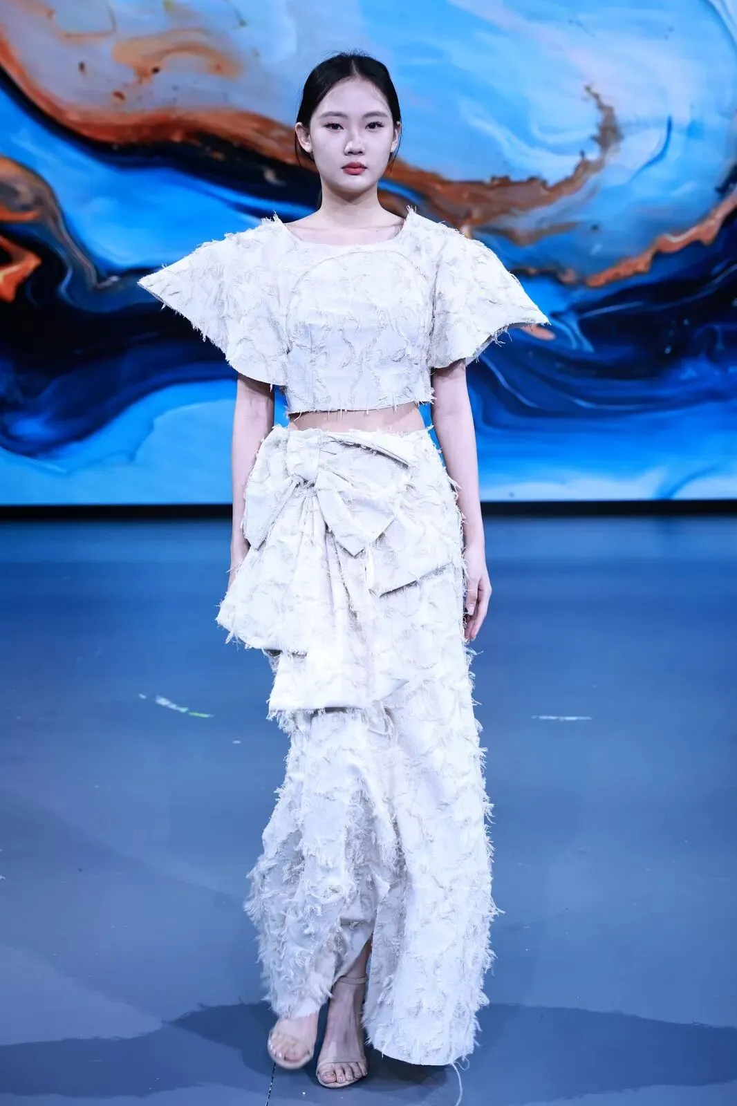“经纬之外”,既蕴含对织物本源的突破,更承载对设计边界的深度思辨。本场秀以服装为核心载体,系统性探索服装本体、空间形态与身体感知的多元关联。同学们在经纬交织的传统织物结构之上,融入对形态美学、文化传承、科技赋能与自我表达的多维思考,让每一套亮相作品都成为承载独特叙事与设计灵魂的艺术载体。