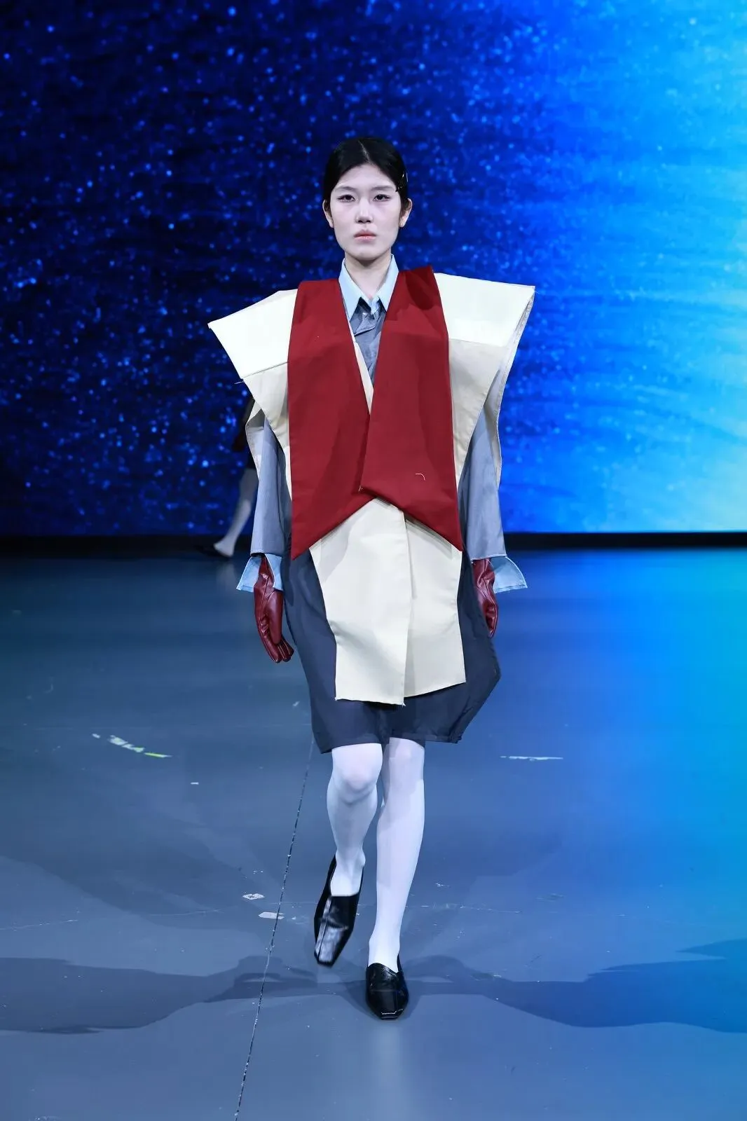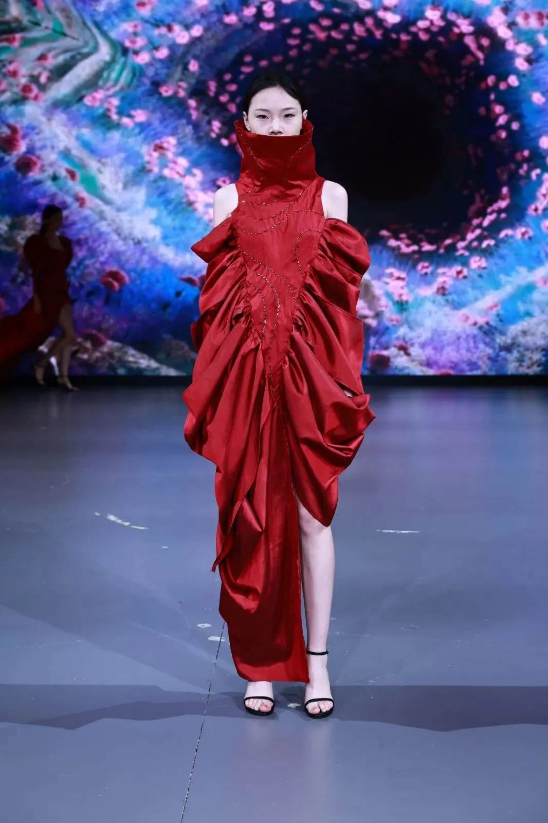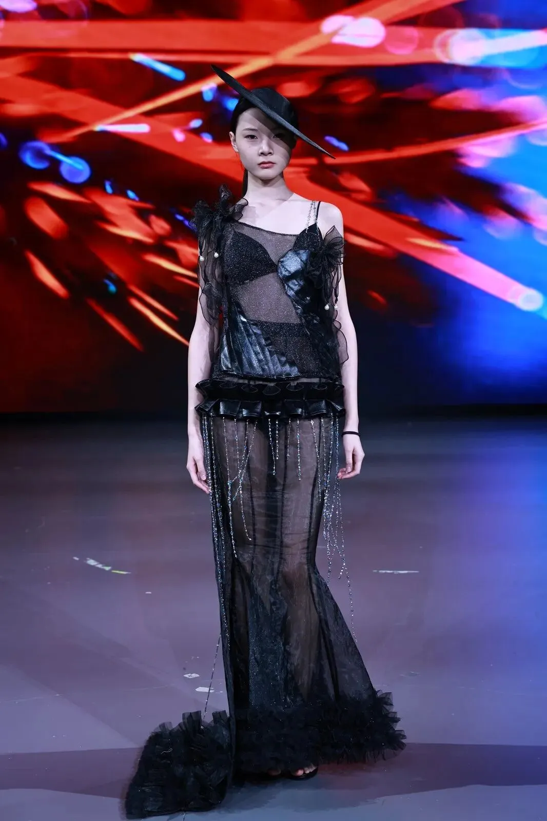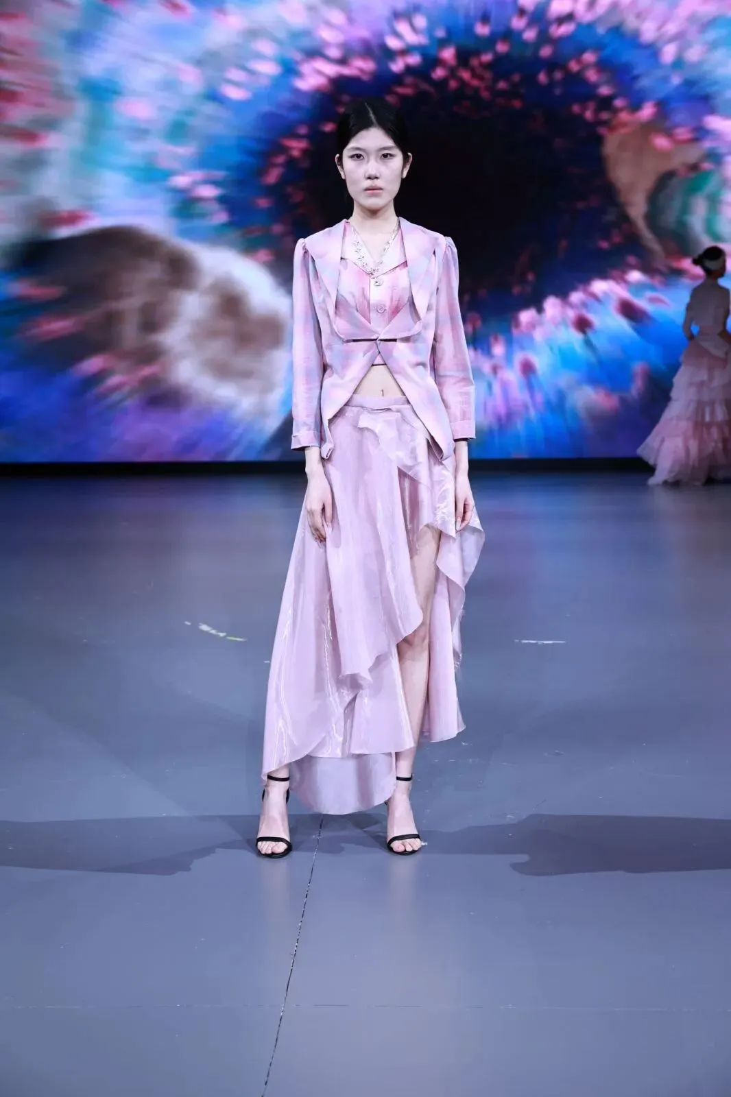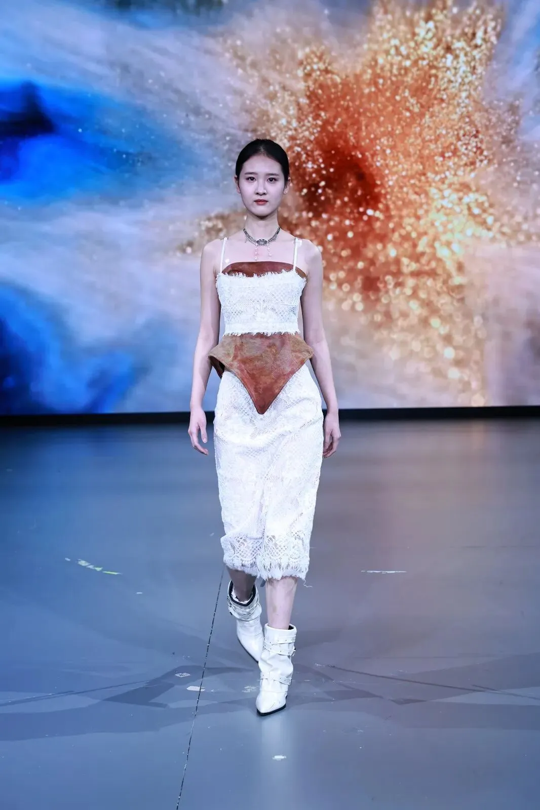 “经纬之外”,既蕴含对织物本源的突破,更承载对设计边界的深度思辨。本场秀以服装为核心载体,系统性探索服装本体、空间形态与身体感知的多元关联。同学们在经纬交织的传统织物结构之上,融入对形态美学、文化传承、科技赋能与自我表达的多维思考,让每一套亮相作品都成为承载独特叙事与设计灵魂的艺术载体。