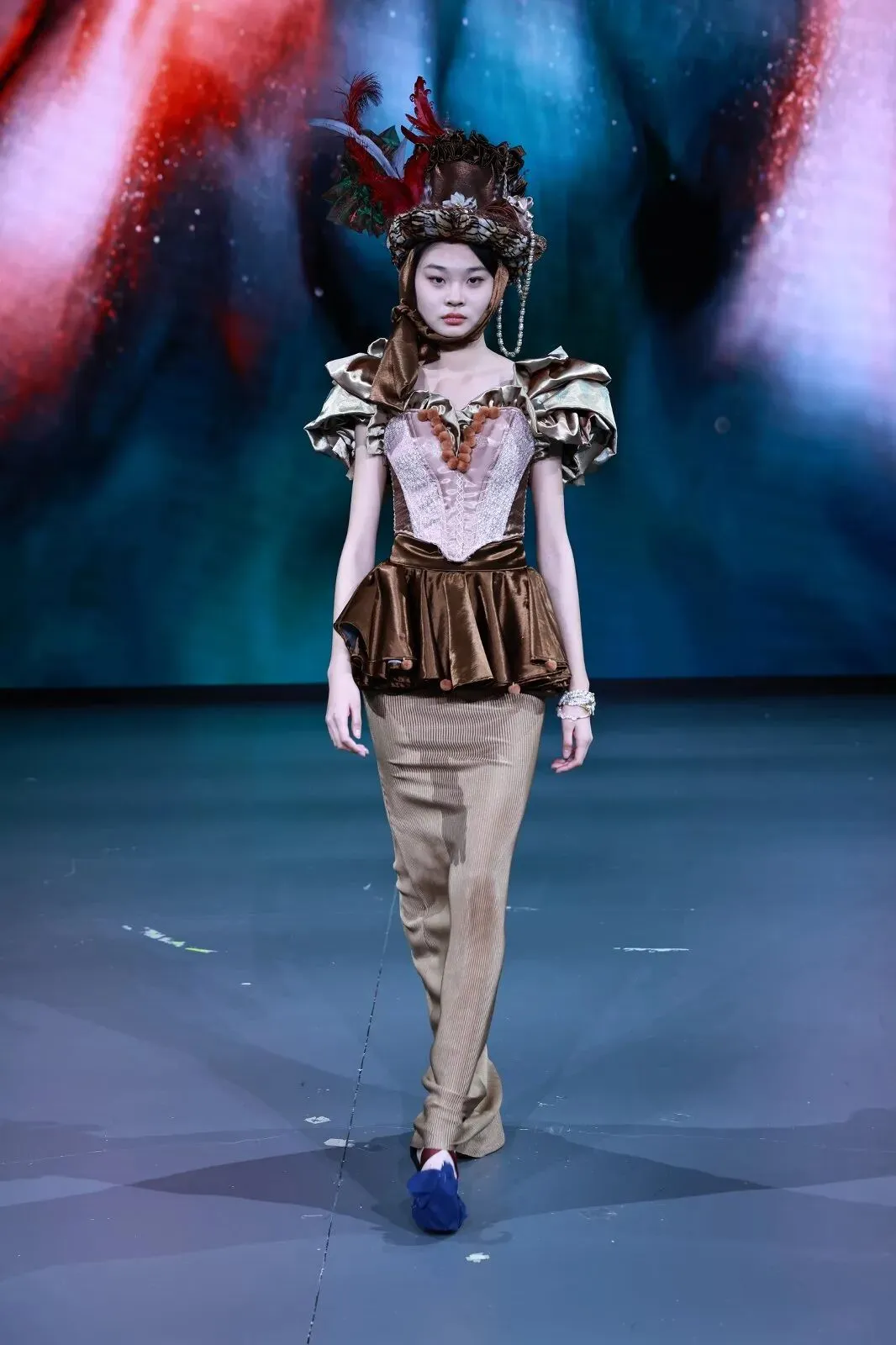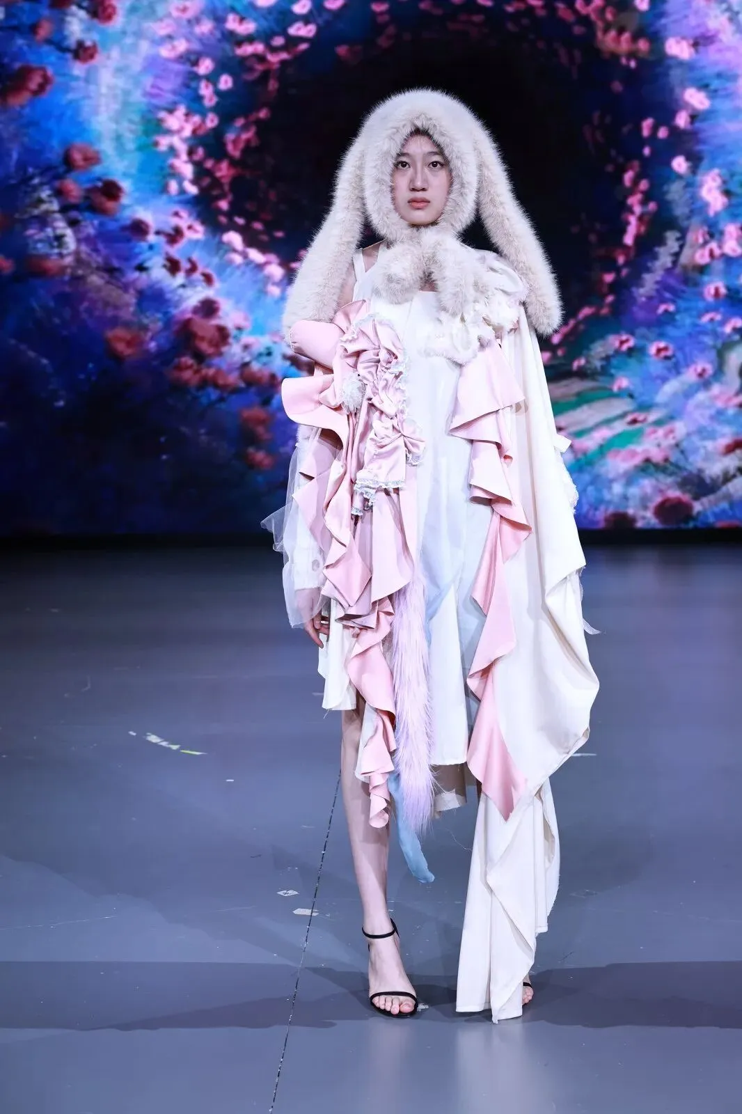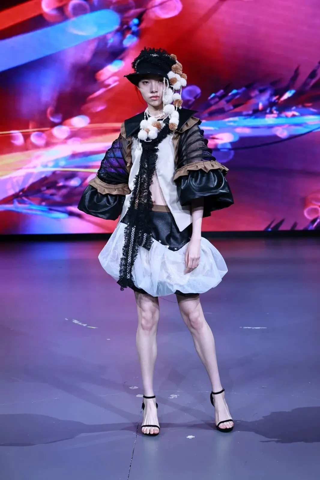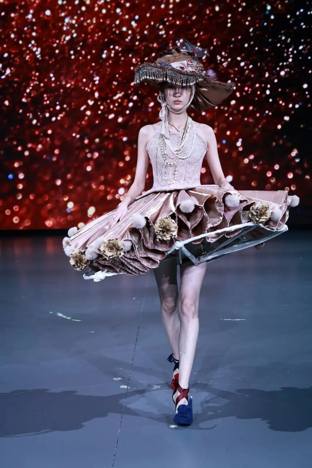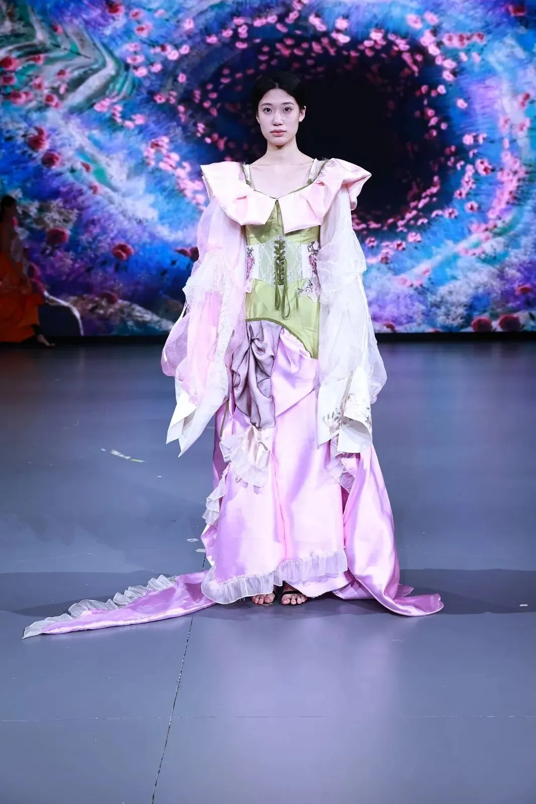 “经纬之外”,既蕴含对织物本源的突破,更承载对设计边界的深度思辨。本场秀以服装为核心载体,系统性探索服装本体、空间形态与身体感知的多元关联。同学们在经纬交织的传统织物结构之上,融入对形态美学、文化传承、科技赋能与自我表达的多维思考,让每一套亮相作品都成为承载独特叙事与设计灵魂的艺术载体。