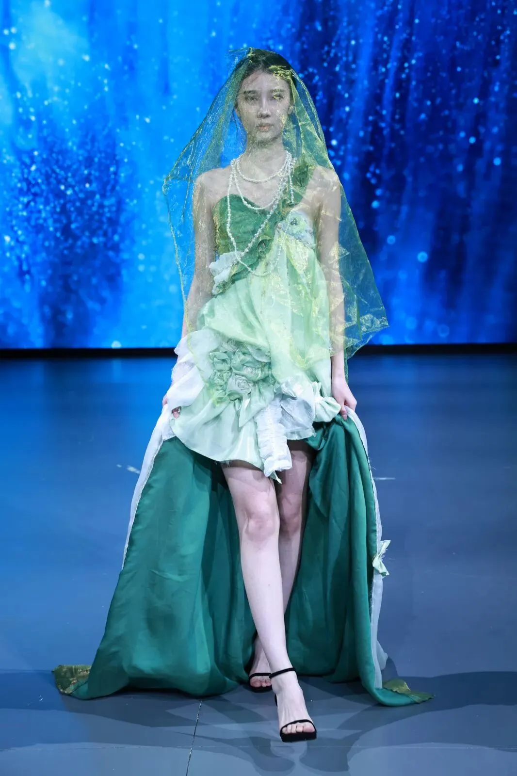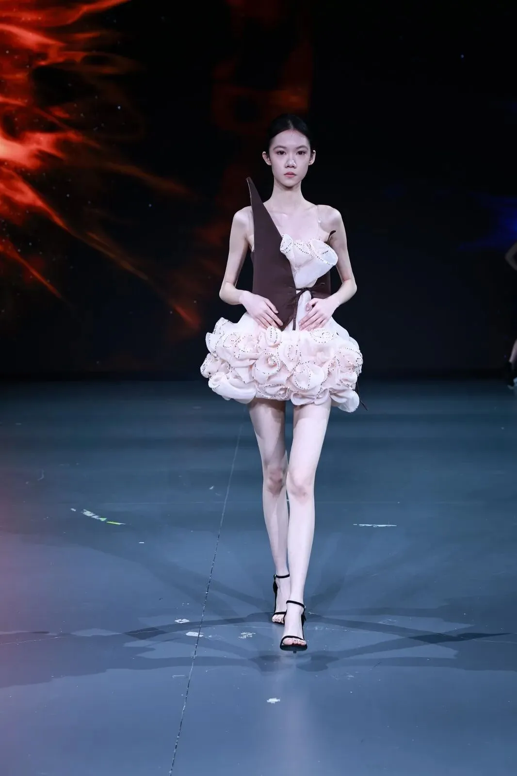 T台上,服装表演专业学子以专业的台步、精准的节奏把控与细腻的情绪传递,将静态的设计作品转化为兼具生命力与感染力的动态展演。每一次转身的灵动,每一个定格的张力,都是对设计理念的二次创作与升华。