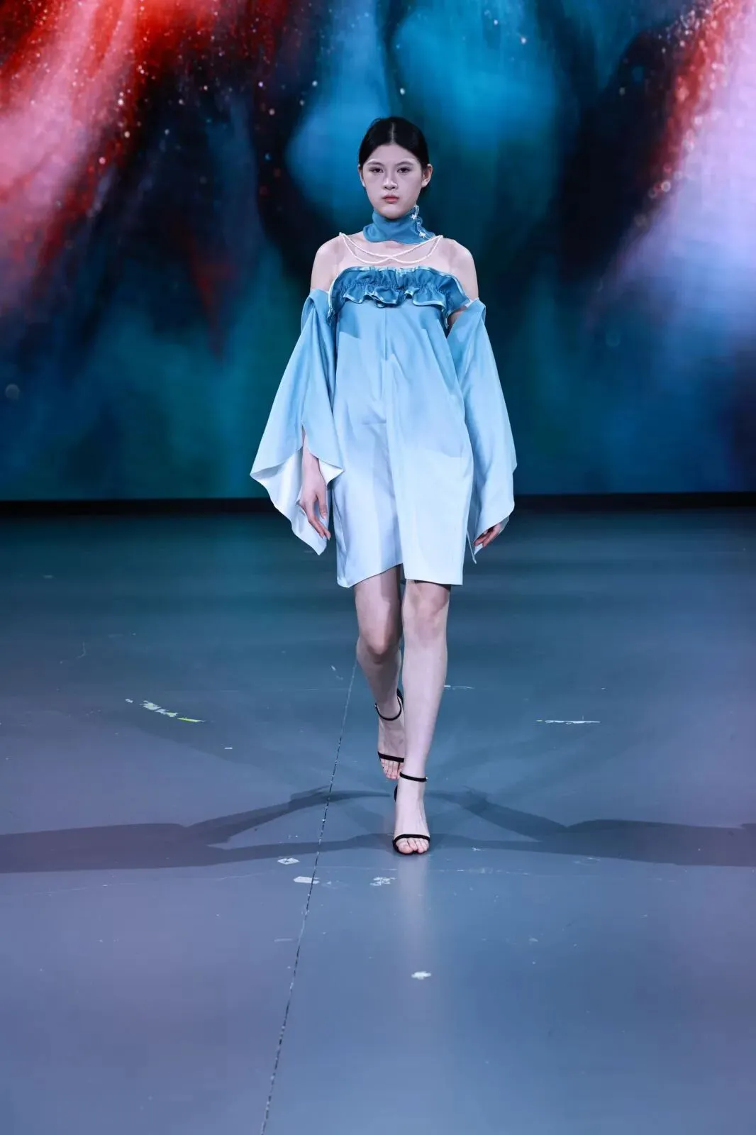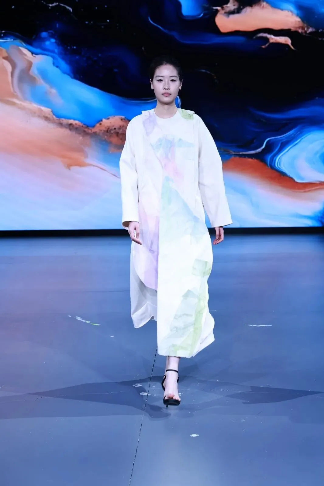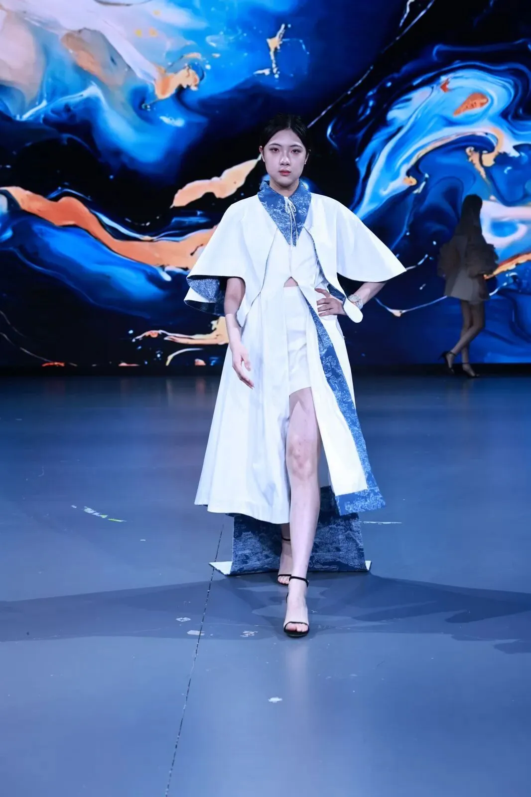 在专业模特的精准演绎下,四个班级的作品依次登场。共同诠释了“经纬之外”的丰富可能。