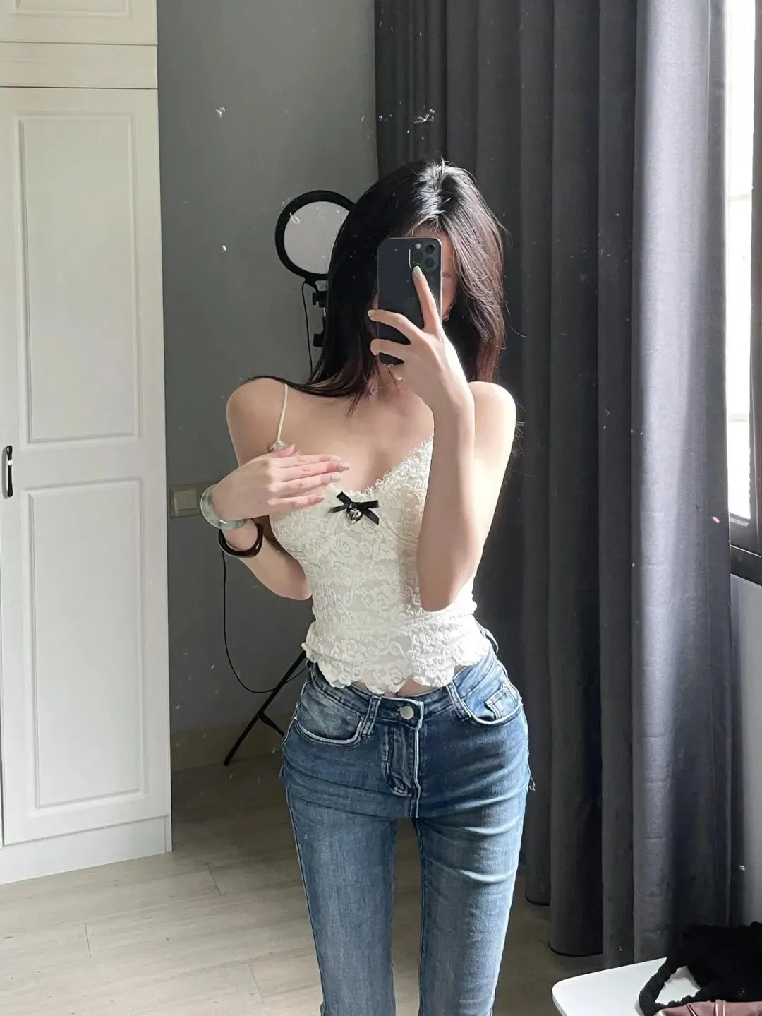 当前位置:首页>美女资讯>牛仔裤配蕾丝上衣太可了