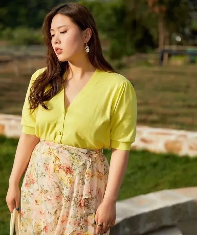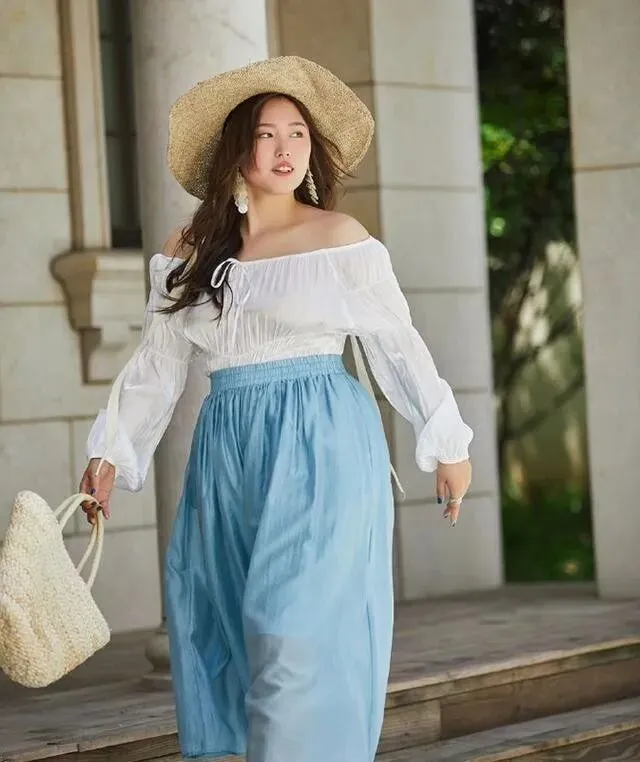 好多胖女孩有个误区 , 觉得包得越严实越好 , 其实恰恰相反 , 你越遮 , 别人越觉得你在藏什么 , 适当露一点肩颈 , 露一点小腿 , 整个人反而轻盈很多~