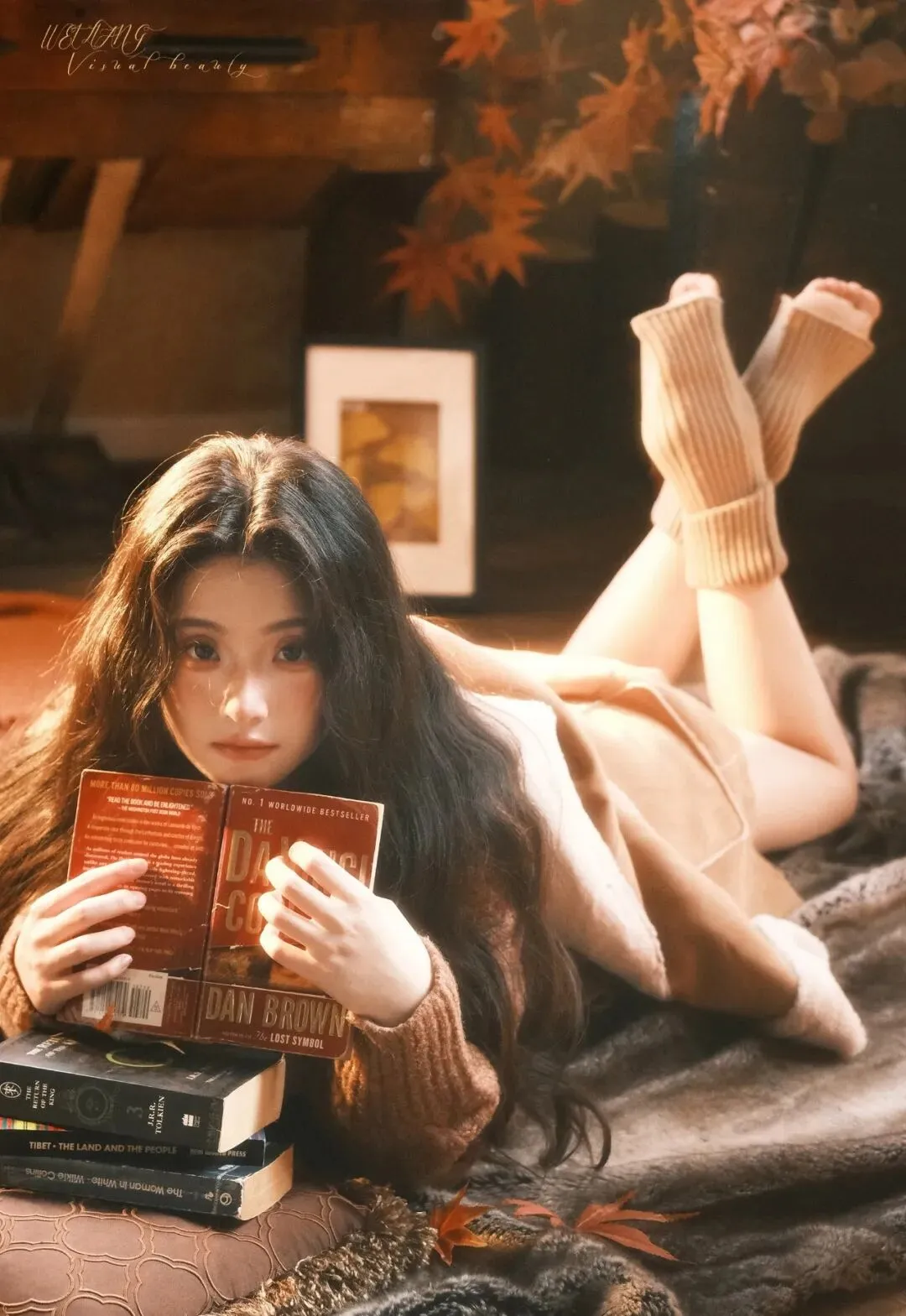 在秋意浓浓的时节,阳光变得温柔而慵懒,透过斑驳的树叶,洒下细碎的光影。此时,一位长发女子慵懒地趴在柔软的毛毯上,沉浸在书的世界里,这画面宛如一首宁静的诗,一幅唯美的画,让人不禁沉醉其中。
