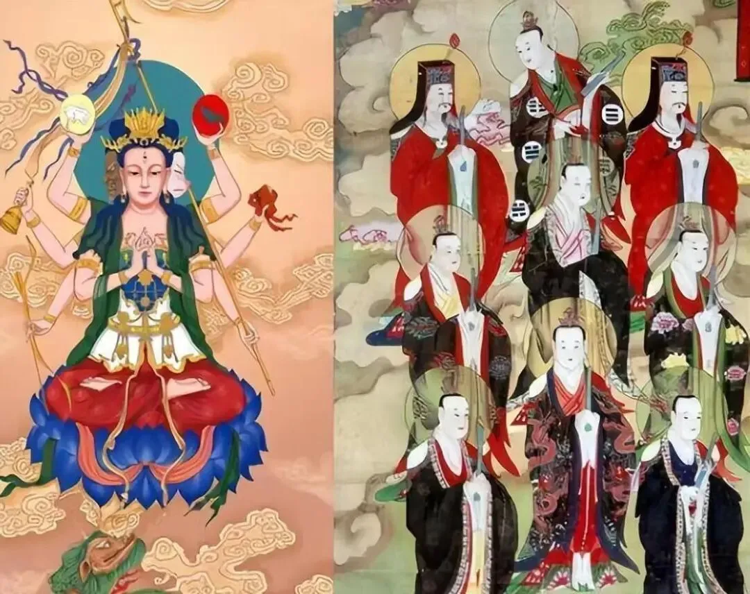 到了唐宋时期,道教体系越来越完善,斗母元君直接被纳入核心尊神梯队,道观里都得给她设个专属神位,祭祀仪式搞得比过年还热闹,《斗母宝诰》也成为诵经祈福的核心经文之一。宋元时期,她的“三目四首八臂”造型彻底定型,还悄悄融合了点密宗风格,变得更潮更酷。