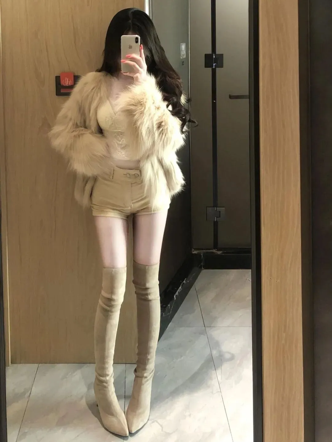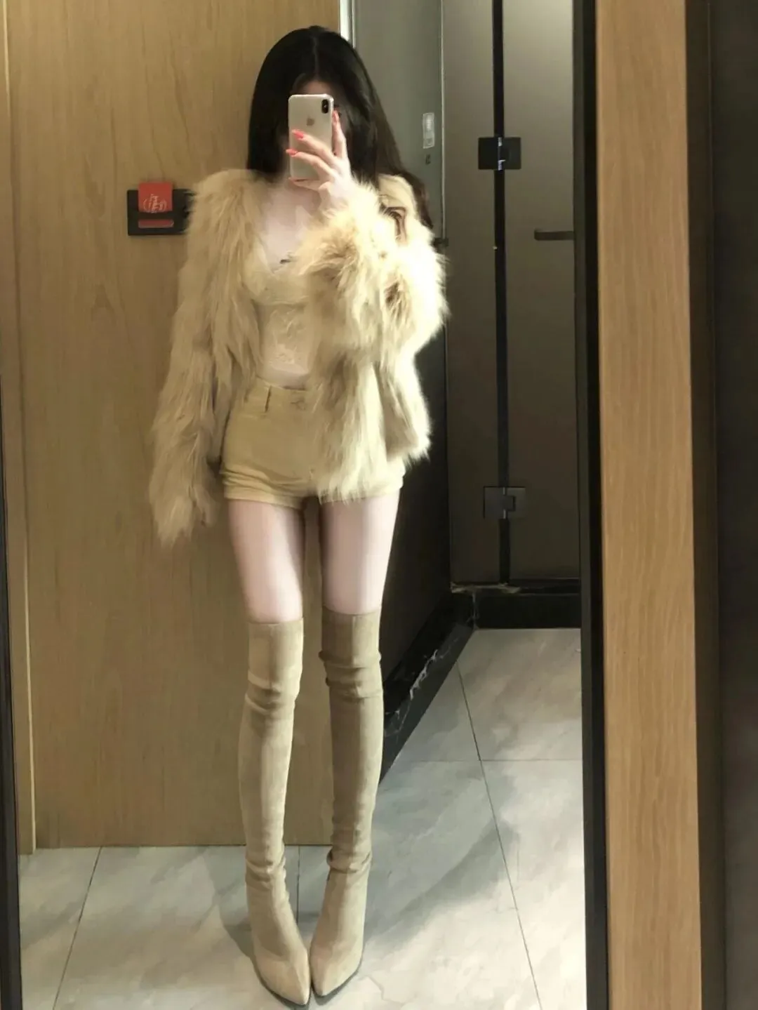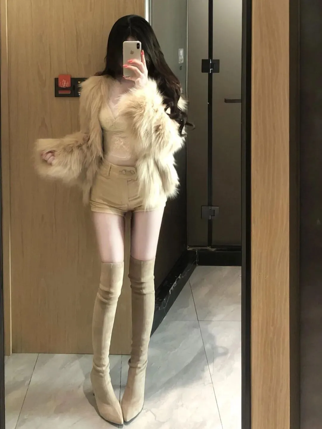 当前位置:首页>美女资讯>奶油白蕾丝+毛毛外套+过膝靴,温柔里带点锋利感