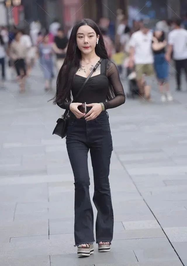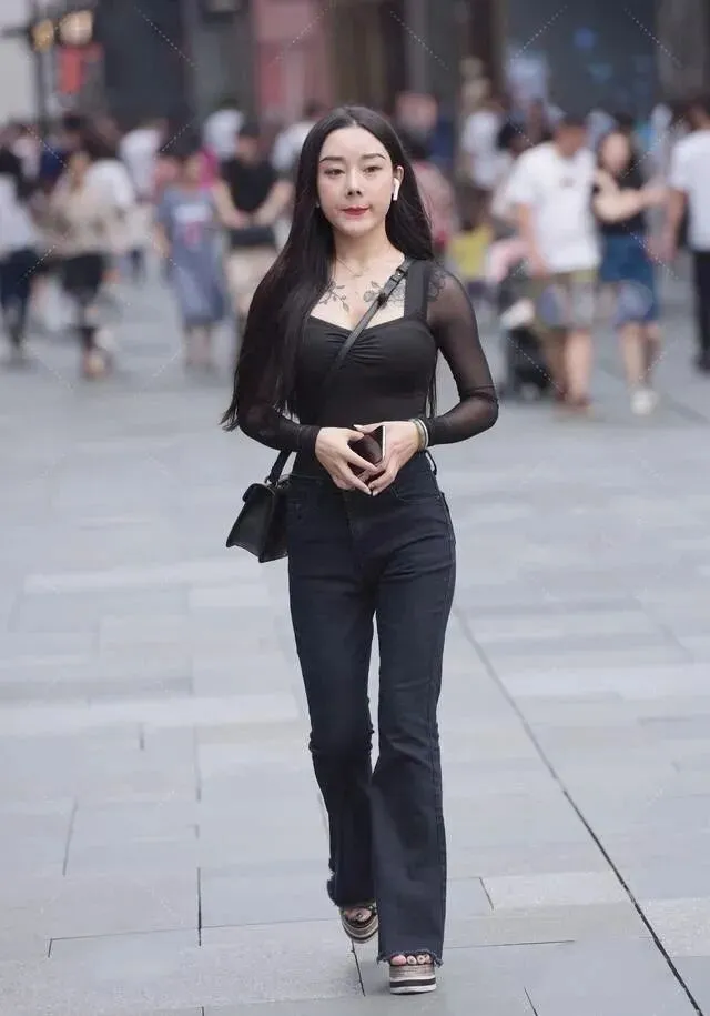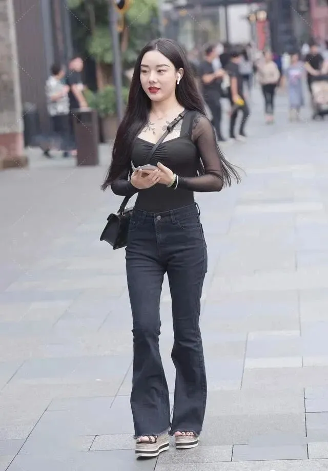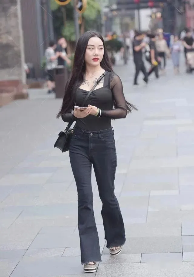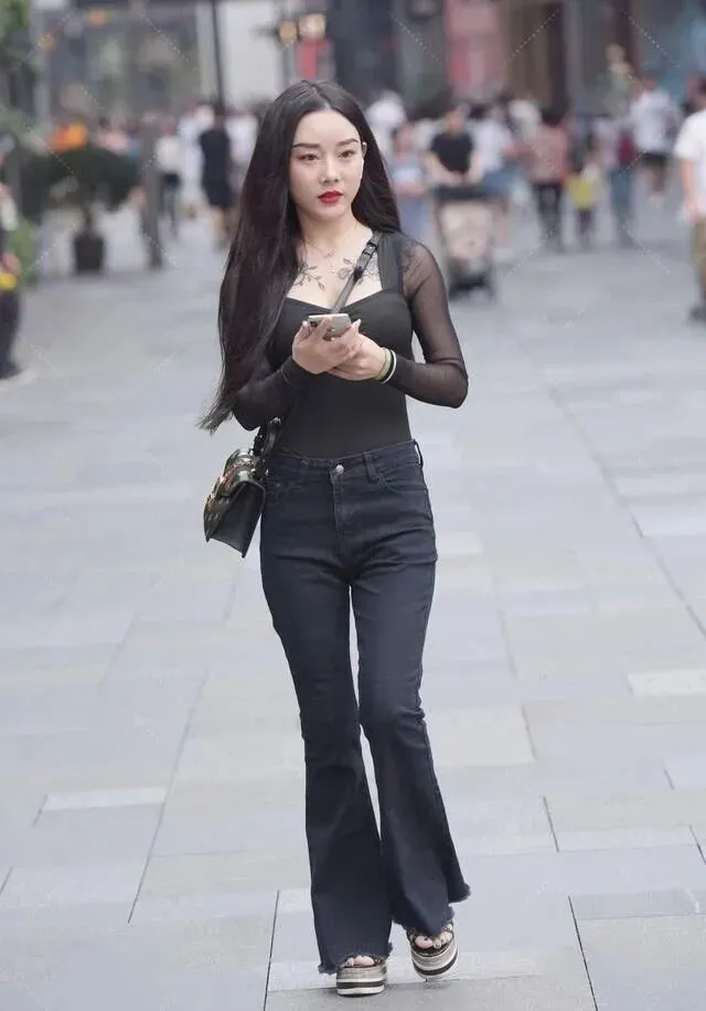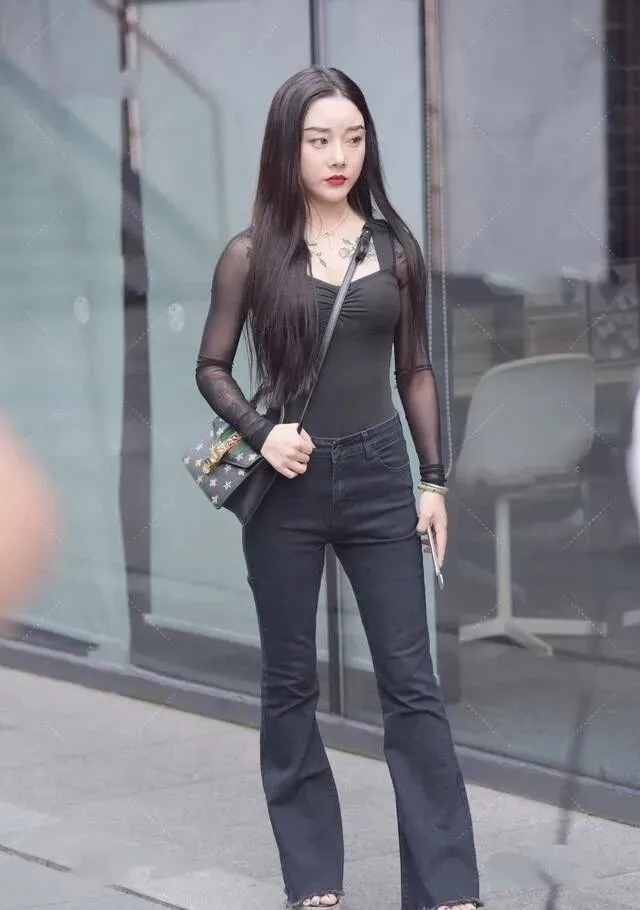 当前位置:首页>美女资讯>黑色抹胸修身上衣,双袖使用蕾丝拼接,再搭配喇叭裤尽显时尚