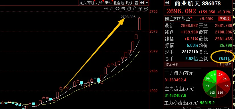 另一方面,作为当下市场最强的主线*商业航天,今天也是再次加速,板块指数都大涨6%了。
