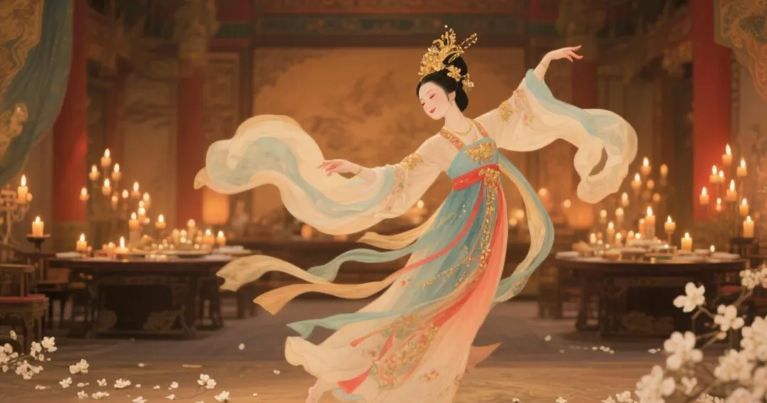 她爱喝酒,有一次玄宗约她赏花来迟,她不悦,独自喝到酩酊大醉,面颊绯红、脚步踉跄,却当众跳起一支舞——那份娇憨妩媚,让皇帝彻底失魂。