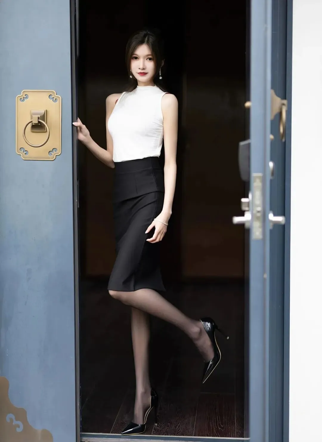 当前位置:首页>美女资讯>时尚模特程程程,白衫黑裙,高挑身材,满屏黑丝大长腿