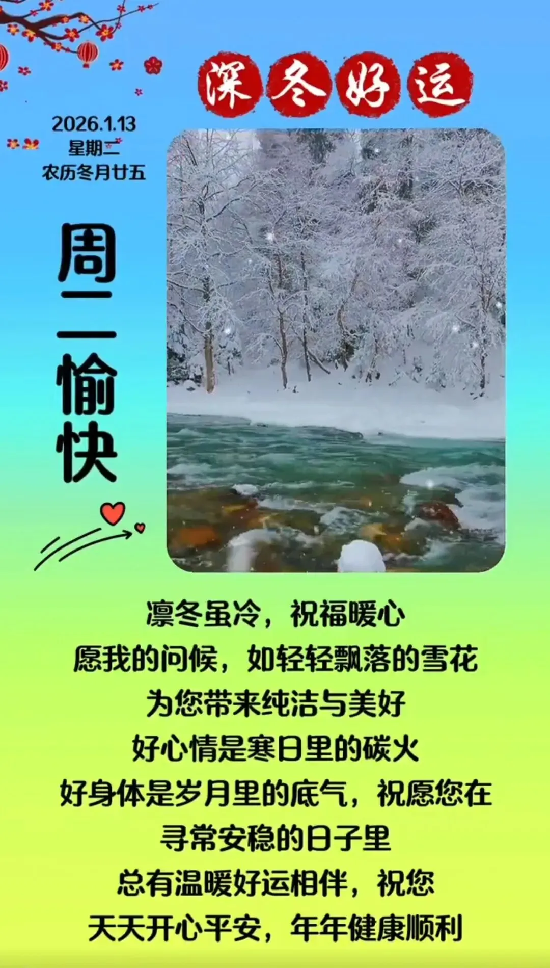 当前位置:首页>美女资讯>1月13日早安图片,周二快乐漂亮早安问候图片大全最新