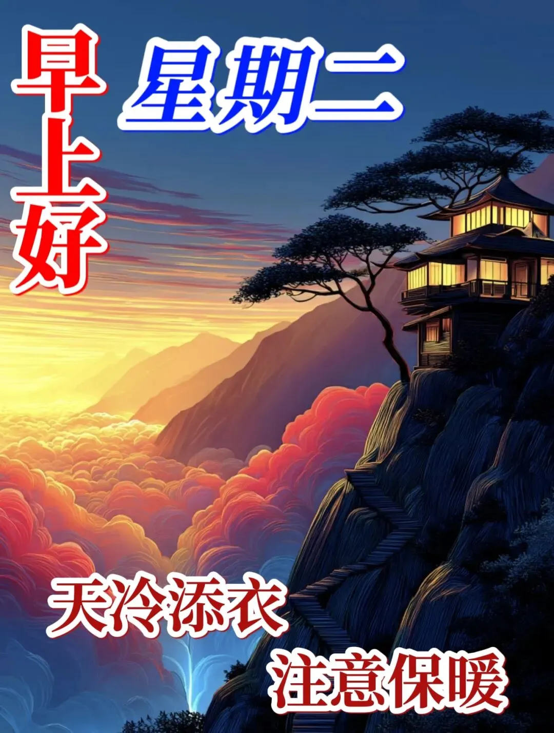 4、🌅早安!寒冬的清晨虽清冷,却藏着静谧的美好,愿你今日有热茶暖手☕,有好友相伴,日子过得热气腾腾,每一天都充满希望与光芒🌟!