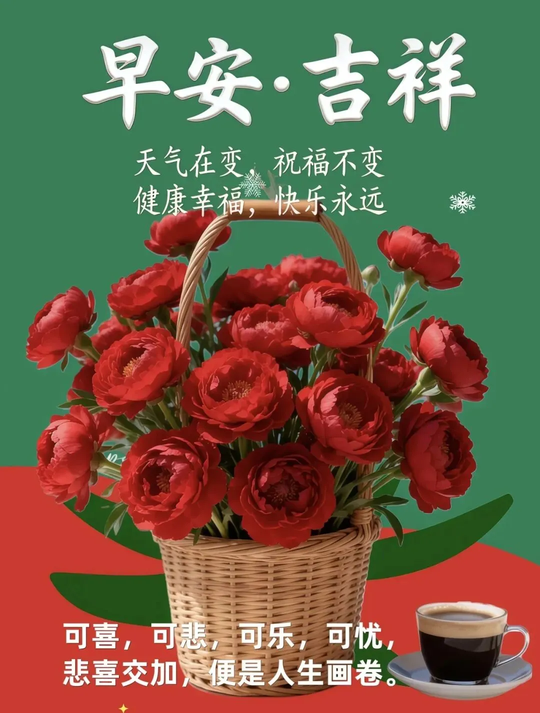 11、❄️寒冬腊月,早安问候送温情💌,愿你天冷有衣穿,心寒有人暖,日子过得有滋有味,每一天都充满阳光与欢笑,岁岁平安多喜乐🥳!