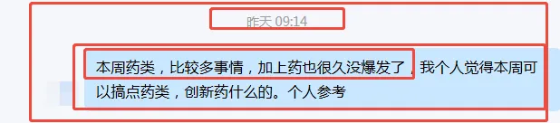 其中,这周医药比较多,再加上我看医药很久没爆发了,已经要被人们遗忘了