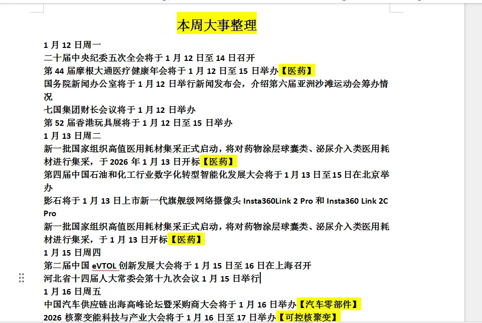 每周内部我都会给大家把整周的大事件归纳出来