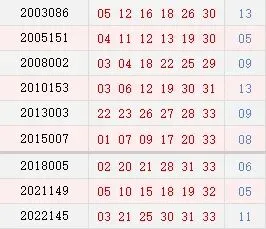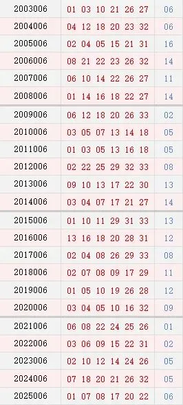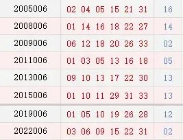 双色球006期历史同期号码汇总