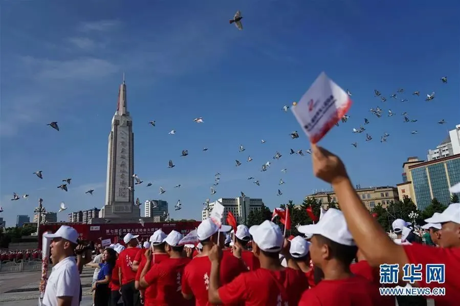 这是举行第七届世界军人运动会火炬传递启动仪式的南昌八一广场(8月1日摄)。新华社记者周密摄