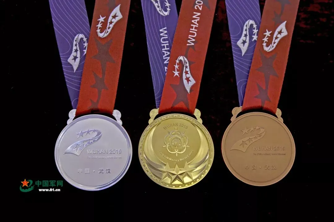 奖牌除常规的CISM(国际军体)标识和第七届世界军人运动会会徽以外,还融入了五角星、翅膀、道路、赛跑的冲刺撞线带、长城、梅花、黄鹤楼建筑形象等视觉元素。