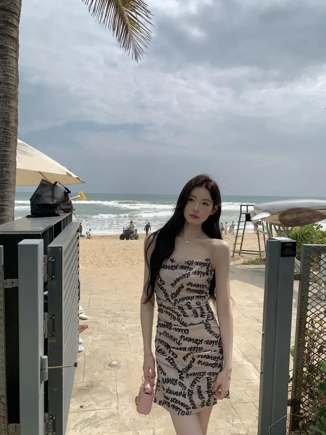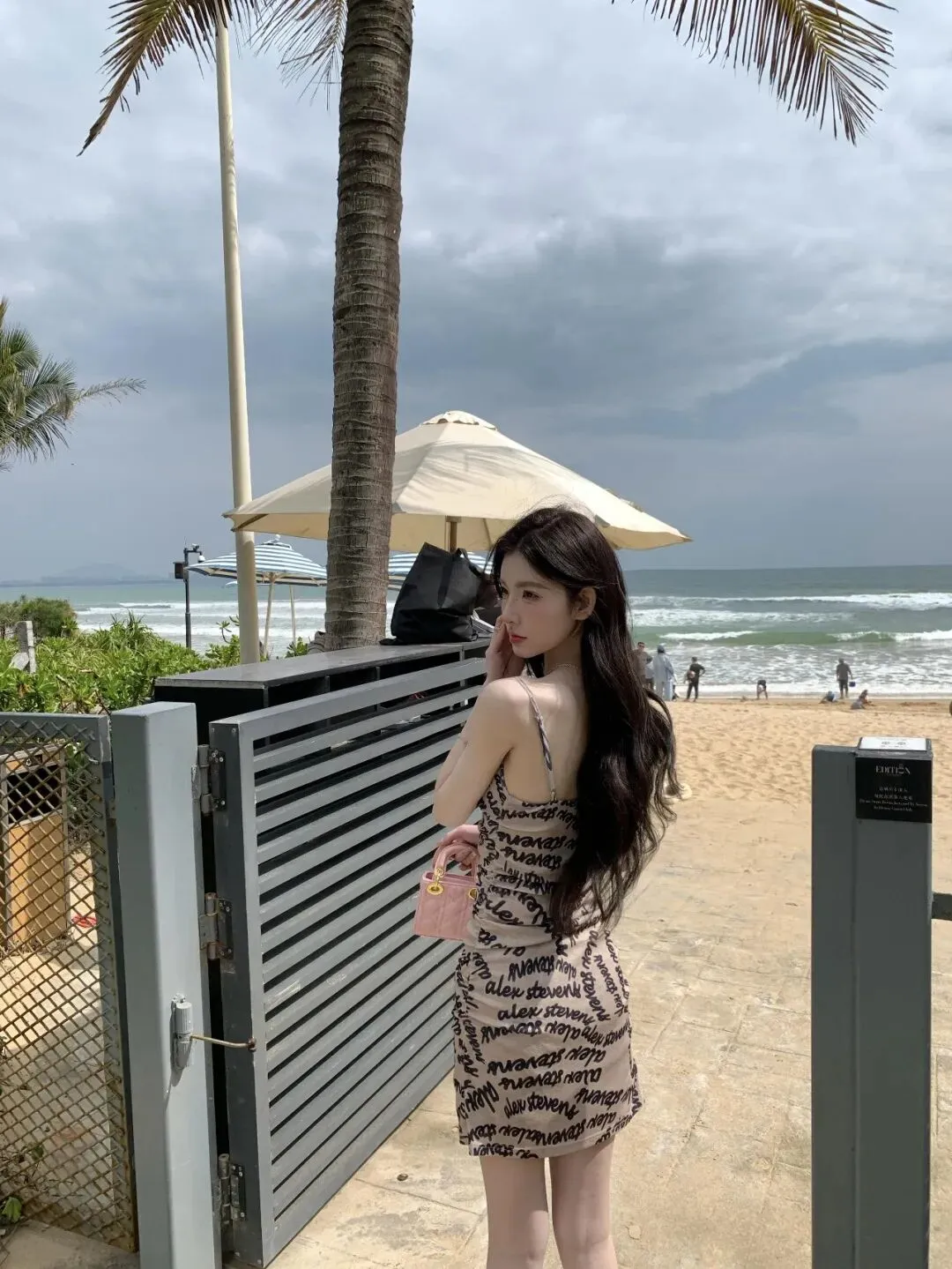 当前位置:首页>美女资讯>度假穿搭|字母印花吊带短裙,海滩散步穿出慵懒时尚感