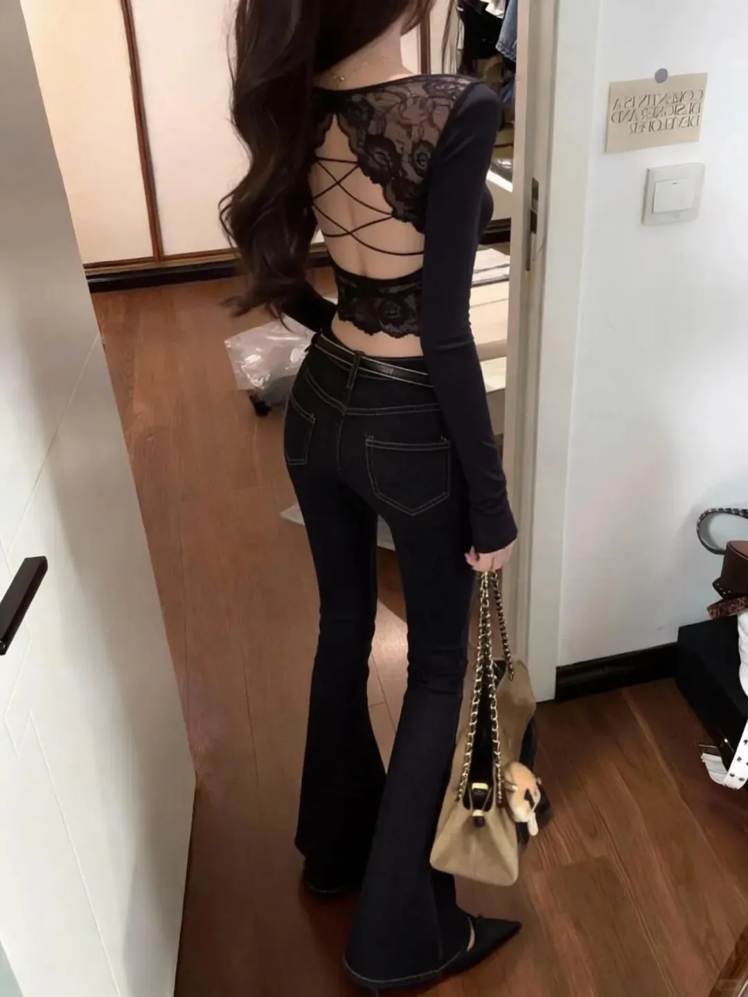 当前位置:首页>美女资讯>黑蕾丝露背衫|背影杀天花板