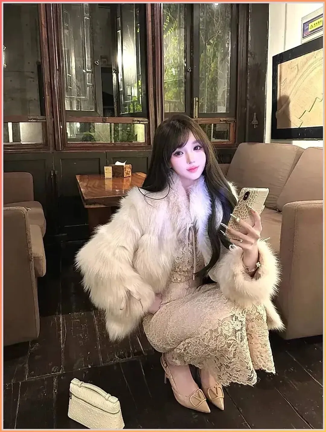 当前位置:首页>美女资讯>毛毛马甲配蕾丝裙,精致甜美又温柔