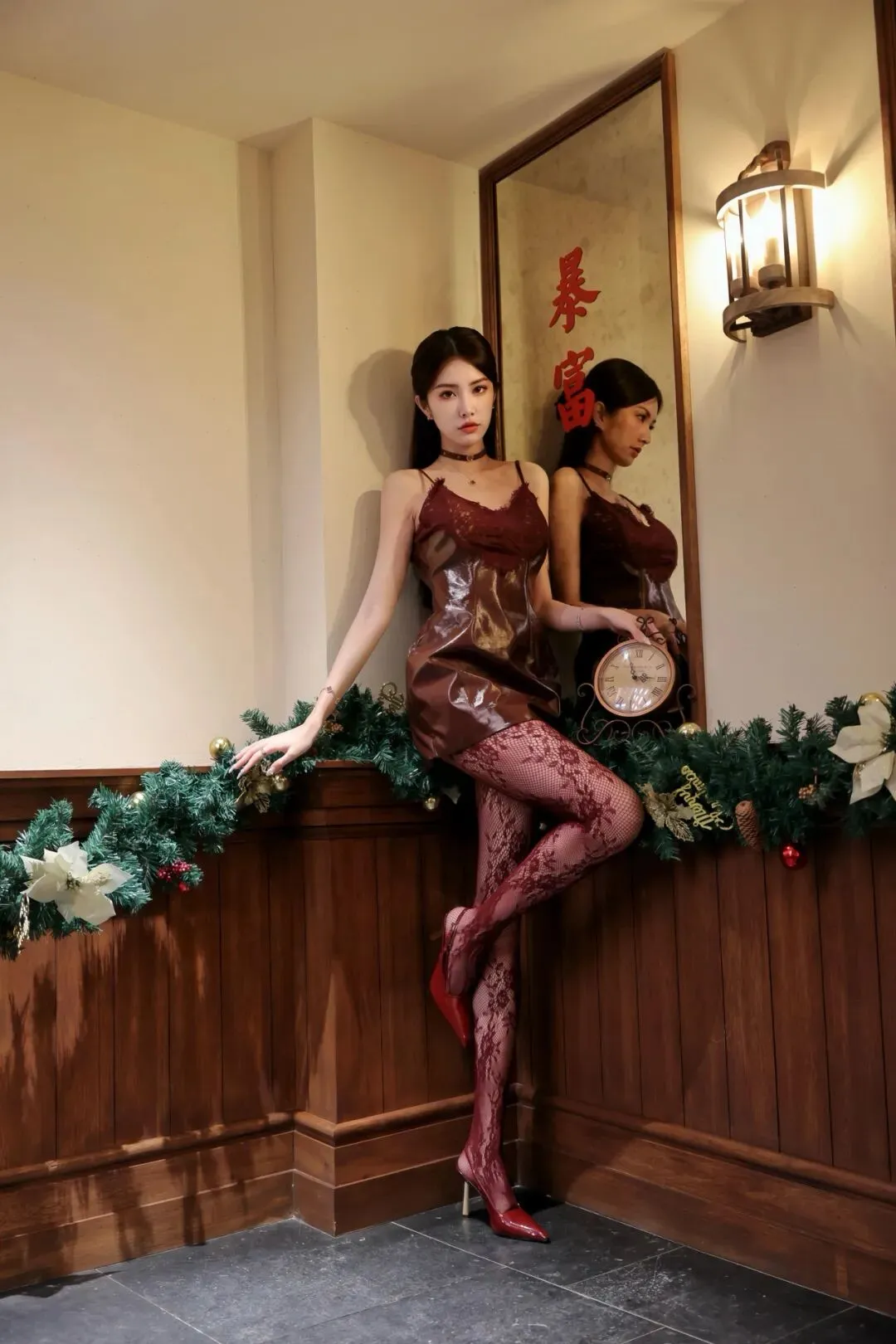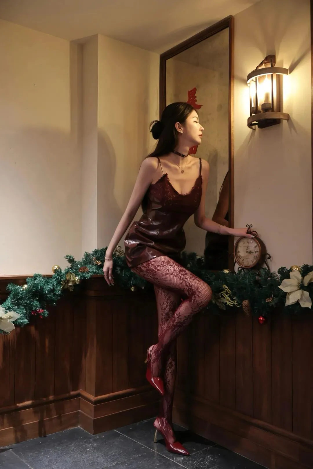 紫色蕾丝吊带裙搭配丝袜高跟鞋:演绎浪漫性感的优雅风情